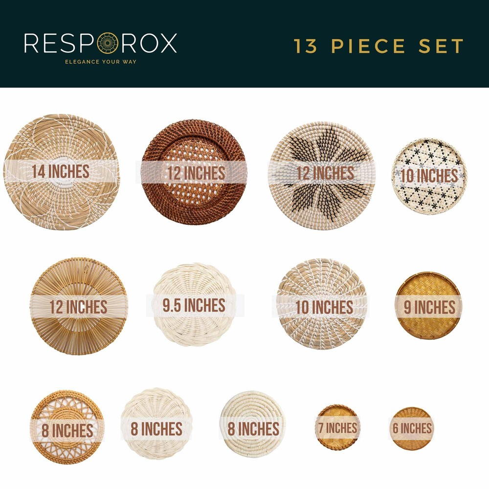 Instant Affordable Decorating: Why spend a fortune on costly prints and paintings? Our Wall Hanging Basket Set gives you 13 round wicker baskets handwoven by Vietnamese artisans; In just minutes, you can create a beautiful accent wall, transform a bare, boring living room, or warm up an empty entranceway – all without busting your budget Unique Combination of Textures: Unlike most wall-hanging sets, ours provides 3 different kinds of premium wicker baskets: 4 seagrass, 5 bamboo, and 4 rattan; The result is an eye-catching interplay of natural tones and textures; What's more, each woven basket boasts its own exquisite design; as a result of their handmade nature, they may have subtle variations in color and size Incredibly Easy to Hang: Each seagrass, bamboo, and rattan basket comes with its own sturdy nail for hassle-free hanging; Plus, you get a set of Kraft paper templates, which you can use to pre-design the way you'll arrange your baskets; You even get a special pencil for marking the place on the wall where you'll position each basket Countless Decorative Possibilities: With their neutral tones and natural textures, these medium, large, and small wicker baskets complement any decor, from rustic to retro, boho to farmhouse, coastal to African; Plus, they easily double as tabletop trays; Use them to display dried flowers and grasses, knick-knacks, fruits, candies, etc. Your Satisfaction Is Our #1 Priority: As a small family-owned firm, we bring you premium handcrafted home goods featuring the finest natural materials; Case in point: these Wall Hanging Baskets for kitchen, living room, and beyond; We're sure you'll love them, but if you don't, simply return them within 30 days for a full money-back refund