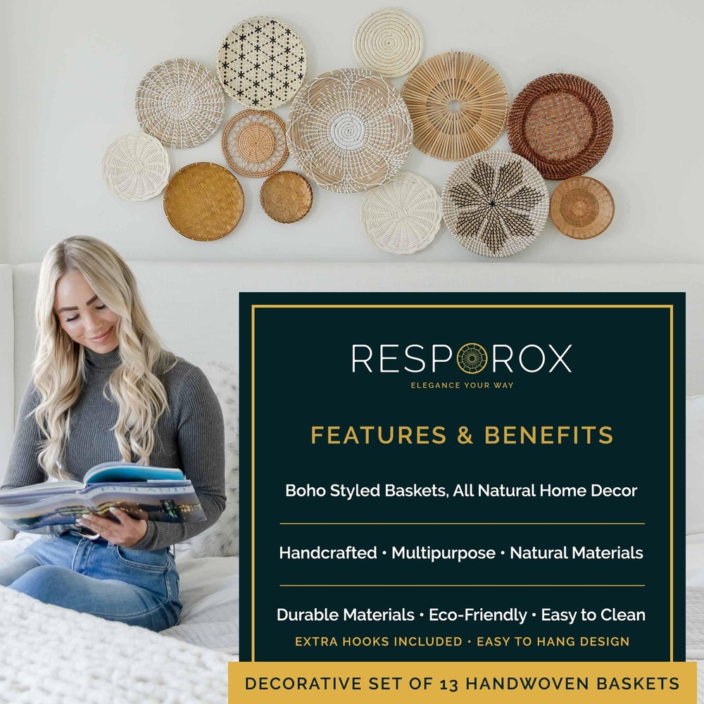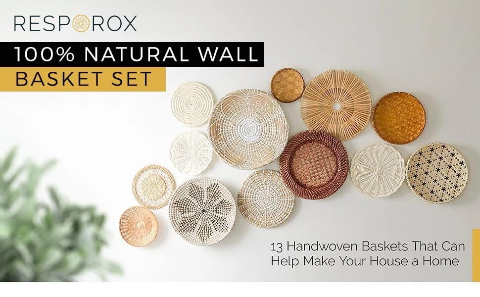Instant Affordable Decorating: Why spend a fortune on costly prints and paintings? Our Wall Hanging Basket Set gives you 13 round wicker baskets handwoven by Vietnamese artisans; In just minutes, you can create a beautiful accent wall, transform a bare, boring living room, or warm up an empty entranceway – all without busting your budget Unique Combination of Textures: Unlike most wall-hanging sets, ours provides 3 different kinds of premium wicker baskets: 4 seagrass, 5 bamboo, and 4 rattan; The result is an eye-catching interplay of natural tones and textures; What's more, each woven basket boasts its own exquisite design; as a result of their handmade nature, they may have subtle variations in color and size Incredibly Easy to Hang: Each seagrass, bamboo, and rattan basket comes with its own sturdy nail for hassle-free hanging; Plus, you get a set of Kraft paper templates, which you can use to pre-design the way you'll arrange your baskets; You even get a special pencil for marking the place on the wall where you'll position each basket Countless Decorative Possibilities: With their neutral tones and natural textures, these medium, large, and small wicker baskets complement any decor, from rustic to retro, boho to farmhouse, coastal to African; Plus, they easily double as tabletop trays; Use them to display dried flowers and grasses, knick-knacks, fruits, candies, etc. Your Satisfaction Is Our #1 Priority: As a small family-owned firm, we bring you premium handcrafted home goods featuring the finest natural materials; Case in point: these Wall Hanging Baskets for kitchen, living room, and beyond; We're sure you'll love them, but if you don't, simply return them within 30 days for a full money-back refund