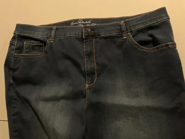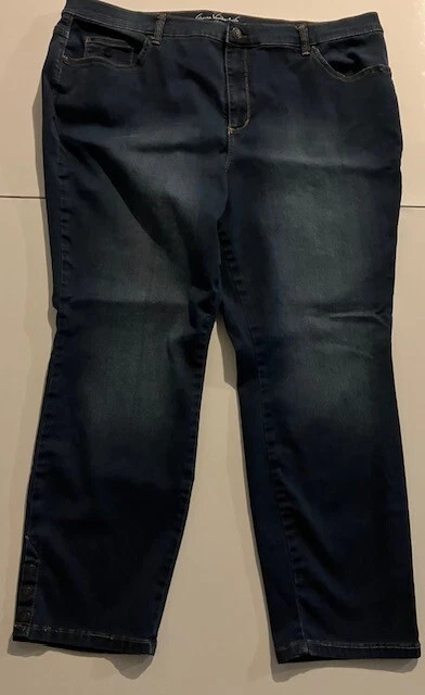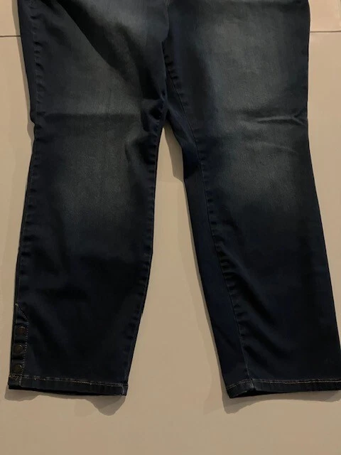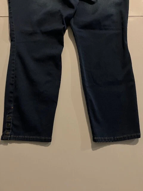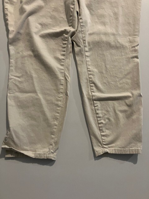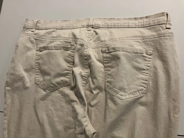 Set of 2 Amanda Vanderbilt Plus Size Women's Stretch Pants Size 20W- Blue- Cream- All Around Slimming Effect. Includes two pairs of plus size stretch pants with regular fit and tapered legs at ankle length. Both are size 20W. Cream pair is made with 98% cotton and 2% elastane. Blue pair is made with 76% cotton, 22% polyester, and 2% elastane. Pants are soft with a brushed fabric. Pants are stretchy with the blue pair like stretchy denim. Pants have button and zipper closure with three front pockets (one small) and two back pockets. Pants have 3 snap ankle closures. Measures 25" inseam and waist is 43". Pants show minimal wear. In good condition for age and use. No rips or tears. No stains. See Photos.