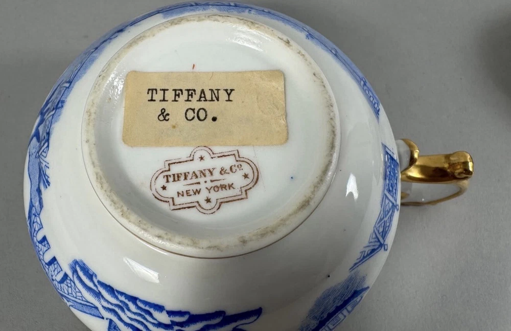 Set of 2 - Copeland China England Retailed by Tiffany and Co. Copeland China, Endland. Retailed by Tiffany and Co. D: Large cup 2.75"h x 4.50" diameter. Small cup 2"h x 4" diameter. Condition Fair. Small chip on large cup. Signs of use.