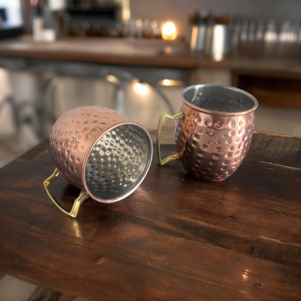 Set of 2 Copper Moscow Mule Mugs for Barware and Cocktail Serving