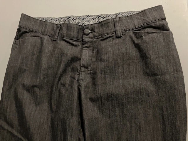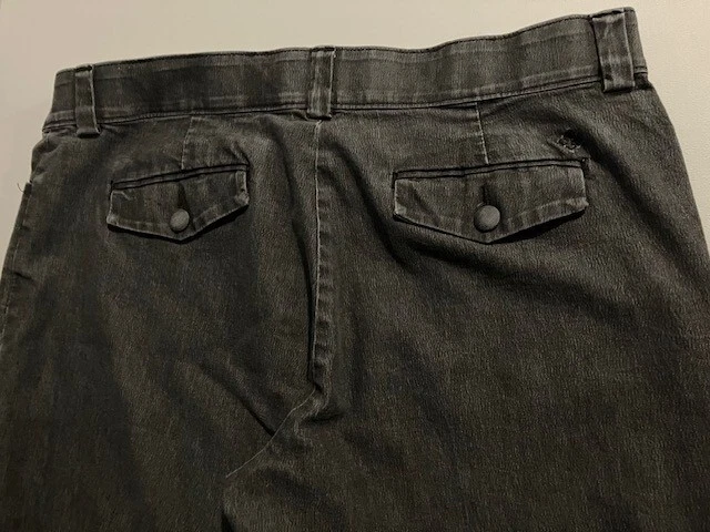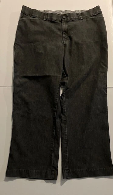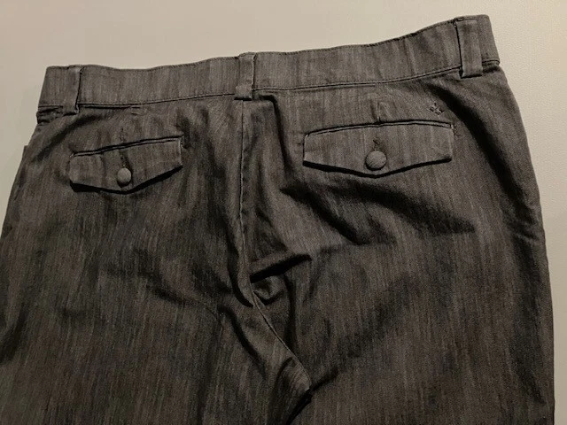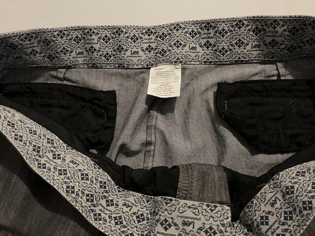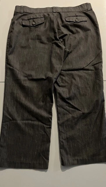 Set of 2 Lee Platinum Label Plus Size Women's Pants Size 20W Petite- Gray. Pants are light gray and dark gray with a subtle pin striping pattern. Pants are plus size relaxed straight fit and made with a cotton blend- 72% cotton, 26% polyester and 2% spandex. Measures 28" inseam and waist is 42". Pants show minimal wear. Soft fabric with stretch- fabric covered button and zip closure. Has two front pockets and two back pockets with fabric covered button closure. Stretch fabric lined no gap waistband. In good condition for age and use. No rips or tears. No stains. See Photos.