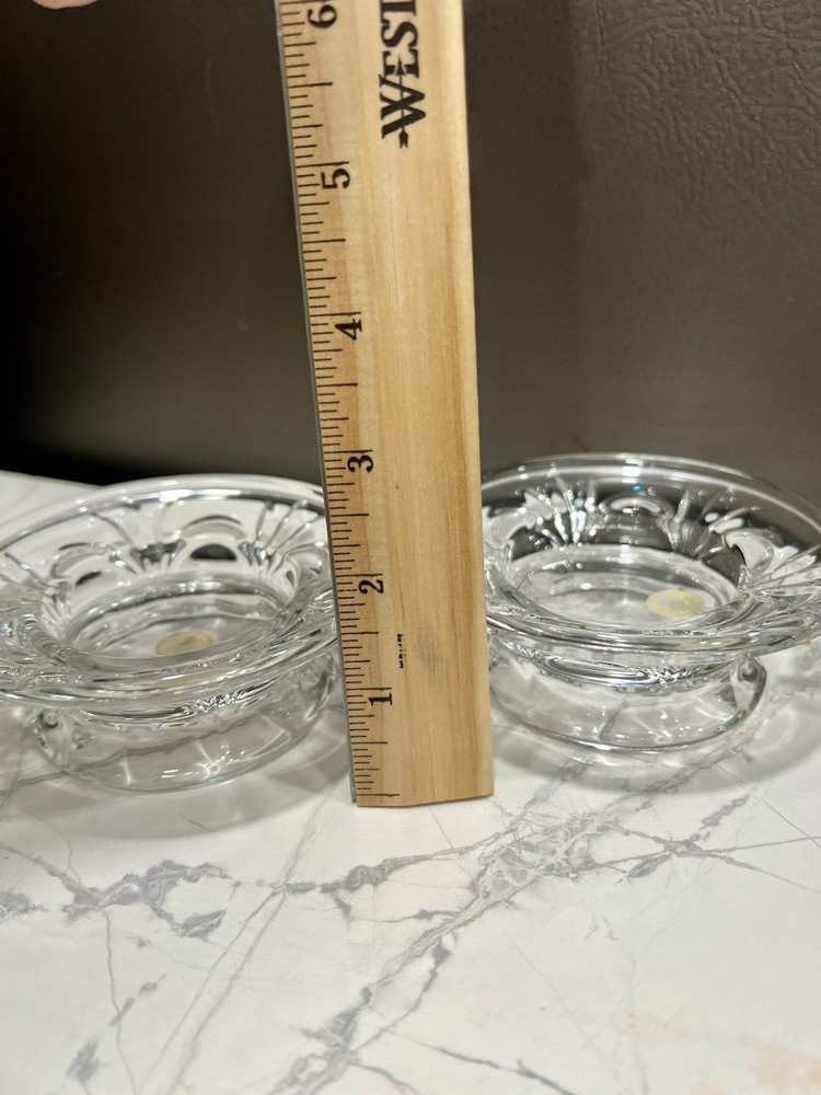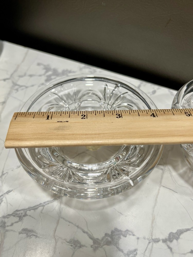 The Partylite Salzburg Crystal Reversible Candle Holder Base is a round, clear glass candle holder made in Germany. Suitable for use with votive candles or tea lights, this free-standing candle holder has a romantic theme. The elegant design and high-quality materials make it a beautiful and durable addition to any home decor.