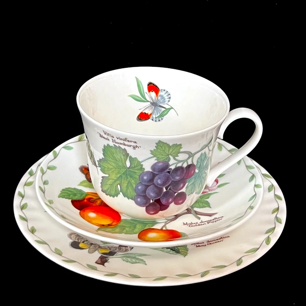 Add a touch of elegance to your morning routine with this set of 2 Large Breakfast Cup, Saucer & Dessert Plate. Made of fine bone china and designed by Roy Kirkham, these cups feature a beautiful floral pattern from "Heritage Fruit" collection. The cups are suitable for both hot and cold beverages and come in a set of 2. These original cups were manufactured in the United Kingdom in 2002 are perfect for collectors or for daily use. Each cup has a unique multicolor design and is made of high-quality materials. Start your day off right with these beautiful cups that are sure to impress. These 2 cups are part of a huge collection of Roy Kirkham fine bone china items including mugs, jumbo breakfast cups with saucers, footed cups with saucers, salad plates and more. _______________________________________________ Price of the item does not include shipping fees. Buyer is responsible for all shipping costs. Please review the listing photos and description carefully. Due to lighting, actual colors may vary slightly from pictures. Items are always carefully and securely packed in a box. The description of items is as accurate as possible. However, if there is a problem with the item you receive, please contact me prior to leaving your feedback and I will be happy to resolve the issue to our mutual satisfaction.