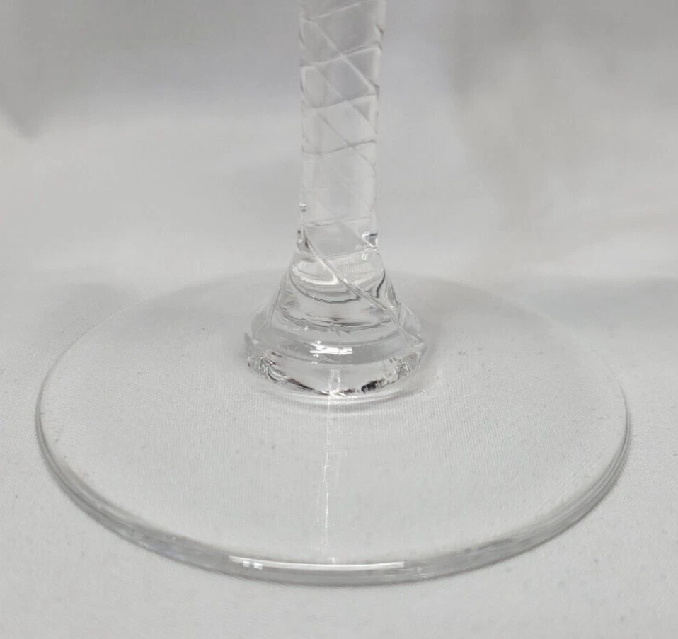 Set of 2 Vintage Crystal Rosé Wine Glasses with Crosshatch Design on Stem - 7 1/2 Inch. - 7 1/2 Inches Tall - 2 3/4 Inch Opening These Glasses are in Excellent Condition and show no signs of wear. Ships Out Same Day, Fast with Tracking & Fully Insured Via Canada Post Expedited Parcel. Item # E55
