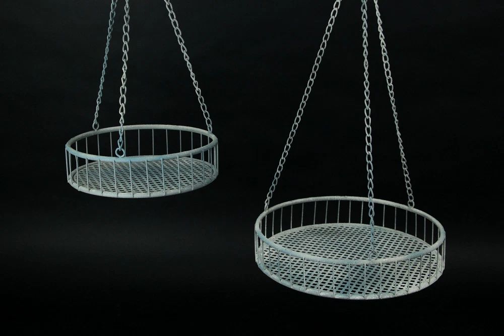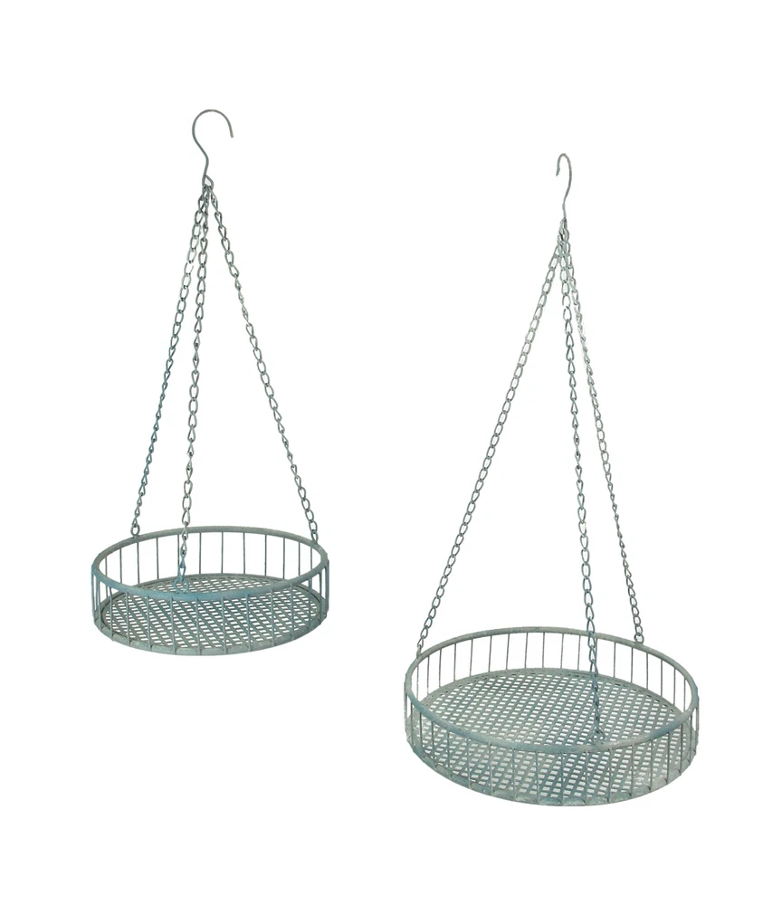 Give your home a touch of rustic country charm with this pair of versatile decorative hanging baskets that can double as plant stands on your porch or patio. Use them as plant stands to create a beautiful display with fresh or artificial plants and flowers, or hang them in your kitchen to store vegetables, fruit, or even jars of spices. Made of metal with mesh screen bottoms, they have a weathered gray finish that gives them an antique look. The larger basket measures 13.75 inches in diameter, and 4.5 inches high, with a 24-inch drop three-point chain link hanger. The smaller basket is 10.25 inches in diameter, and 3.5 inches high, with a 20-inch drop hanger Our eBay Store About Us Add to Favorite Sellers Set of 2 Weathered Gray Metal Mesh Hanging Plant Stands / Baskets OVERALL SIZE - Large - 13.75 Inches in Diameter, 3/5 Inches High, 24 Inches Drop Hanger. Small - 10.75 Inches in Diameter, 3.5 Inches High, 20 Inches Drop Hanger DURABLE MATERIAL - Crafted of Metal For Years of Maintenance Free Display RUSTIC FINISH - Weathered Gray Enamel Coating Gives Them an Antique Look EASY TO HANG - From Shepherds Hooks, Garden Stakes and Trees GREAT GIFT - For Yourself, Friends and Family Give your home a touch of rustic country charm with this pair of versatile decorative hanging baskets that can double as plant stands on your porch or patio. Use them as plant stands to create a beautiful display with fresh or artificial plants and flowers, or hang them in your kitchen to store vegetables, fruit, or even jars of spices. Made of metal with mesh screen bottoms, they have a weathered gray finish that gives them an antique look. The larger basket measures 13.75 inches in diameter, and 4.5 inches high, with a 24-inch drop three-point chain link hanger. The smaller basket is 10.25 inches in diameter, and 3.5 inches high, with a 20-inch drop hanger Product Details Color Grey Height 3.5 Length 13.75 Weight 3.35 LB