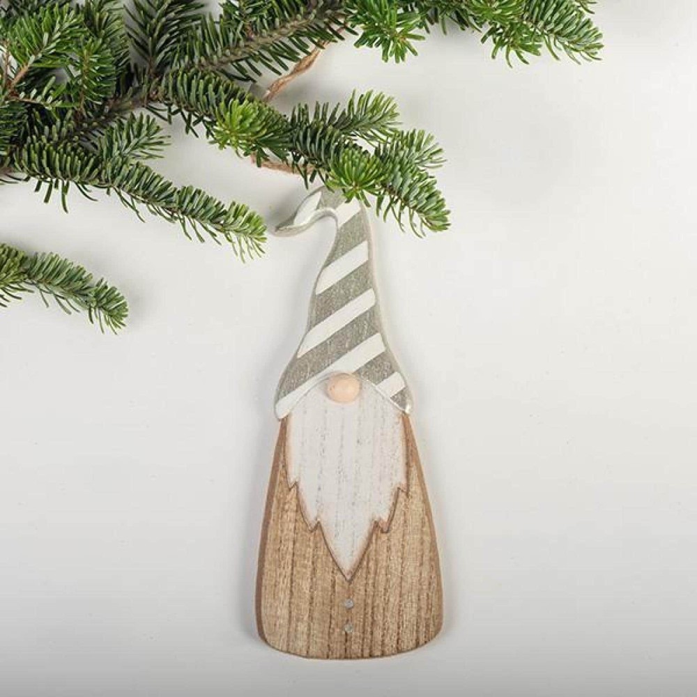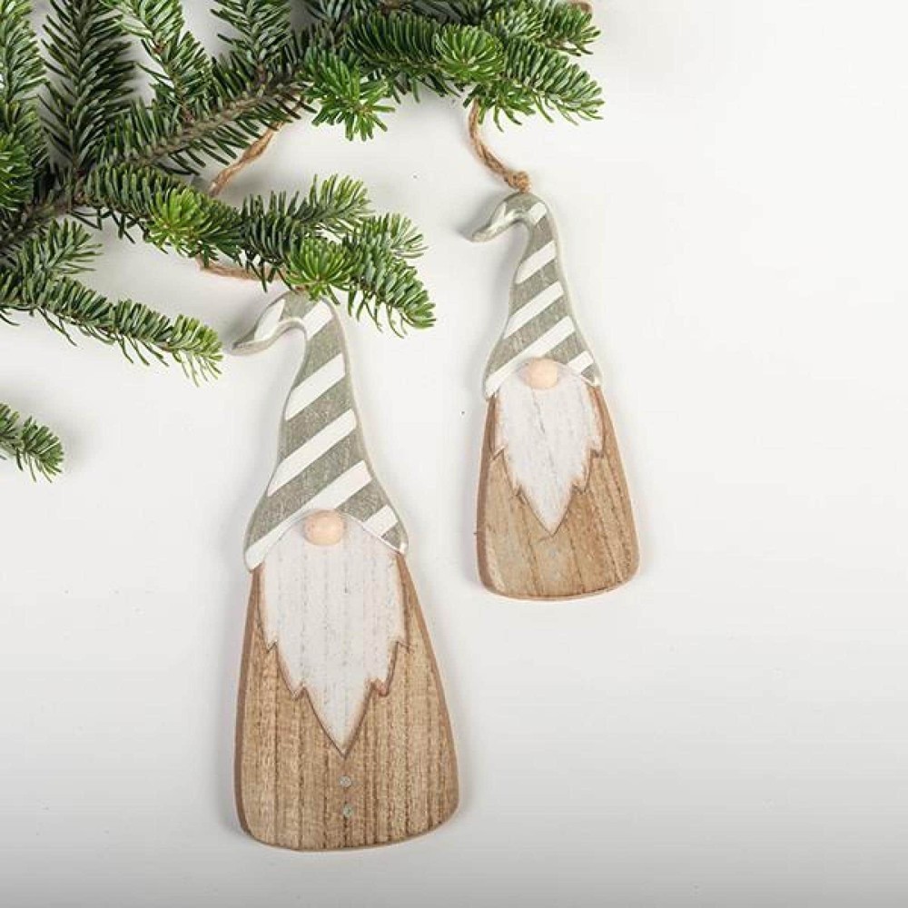 Make every day a holiday when you display these beautiful ornaments. Free Shipping Over $49.99* Details Set Of 2 Wooden Santas In Gray And White Striped Hats Ornaments Product Description: Make every day a holiday when you display these beautiful ornaments.