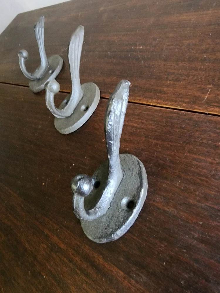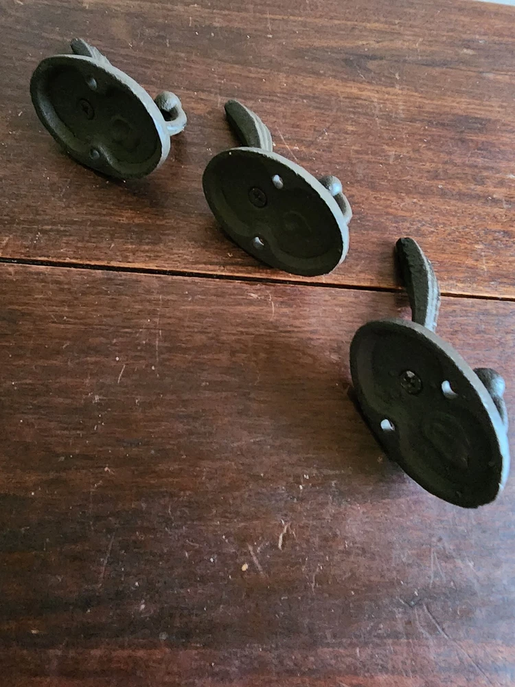 Set of 3 Black Wrought Iron Metal Wall Hanging 2 Peg Hooks Coats/Towels/Jewelry