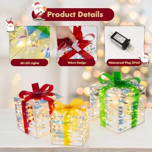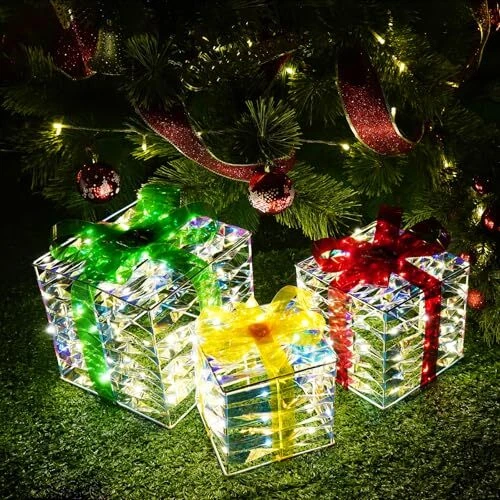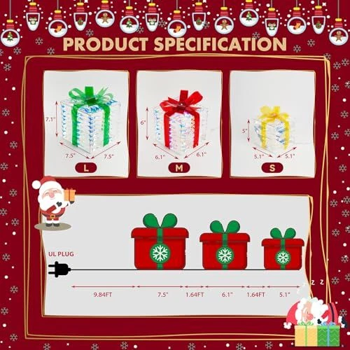 30 Days Return Policy Fast Delivery Trusted seller Set of 3 Christmas Lighted Gift Boxes Plug-in 60 Led Light Up Box Ornament for Christmas Decorations Indoor Outdoor Yard Xmas Tree Holiday Party Lawn Porch Home Decor (PVC) Product Description Dazzling Christmas Decor: The Christmas gift box set includes three distinctively crafted gift boxes of varying sizes, ranging from large (7.5" x 7.5" x 7.1"), medium (6.1" x 6.1" x 6"), to small (5.1" x 5.1" x 5"). Each box is adorned with a red bow and pinecone berries. Safe and Durable: Crafted from high-quality materials, Christmas yard decorations gift boxes with their weather-resistant design, you can count on them to shine brilliantly throughout the holiday season. We prioritize safety and quality. These Christmas decorations indoor home decor gift boxes are UL-certified, ensuring your peace of mind while they adorn your home Effortless Assembly: Simple setup in minutes - just unfold, fix the bow, and plug in. No tools are required, so you can enjoy your decorations in no time. Share the holiday spirit by gifting these charming outdoor holiday decorations boxes to family and friends. They make a delightful present that adds a touch of magic to any space Brilliant Energy-Efficient LED Lights: One of the standout features of these outside Christmas decorations gift boxes is their enchanting LED illumination. Energy-efficient and long-lasting, these lights will brighten up your space with a warm, inviting glow. The 60 LEDs are meticulously placed to ensure even distribution, creating a harmonious display of light Versatile Decoration: These outdoor Christmas decor gift boxes are more than just decorations; they are a symbol of the joy and warmth of the holiday season. Whether you want to decorate a living room, office, storefront, porch, garden, or entryway, these lighted outdoor Christmas decorations gift boxes are versatile enough for both indoor and outdoor use and will create a cheerful and inviting atmosp for all to enjoy Shipping Returns Payment Shipping Shipping is FREE to all addresses other than APO/PO boxes in the lower 48 states. All our stock ships from US-based warehouses. Shipped via USPS or UPS (depending on location and package weight) Unless stated otherwise, all orders will ship within 24-72 hours of your payment being processed. Check our feedback to see the great reviews of FAST shipping we offer. Returns As our valued customer, we will do our best to make sure the product you receive arrives to you on time and as expected. If you are not satisfied with your purchase, please contact us within 30 days of receiving your order to process a return. Payment We currently accept payment via eBay managed payments only. Once payment is cleared, we will dispatch your shipment within 1-3 business days. Please refer to the "Shipping" tab for more information regarding shipping speed to your destination.