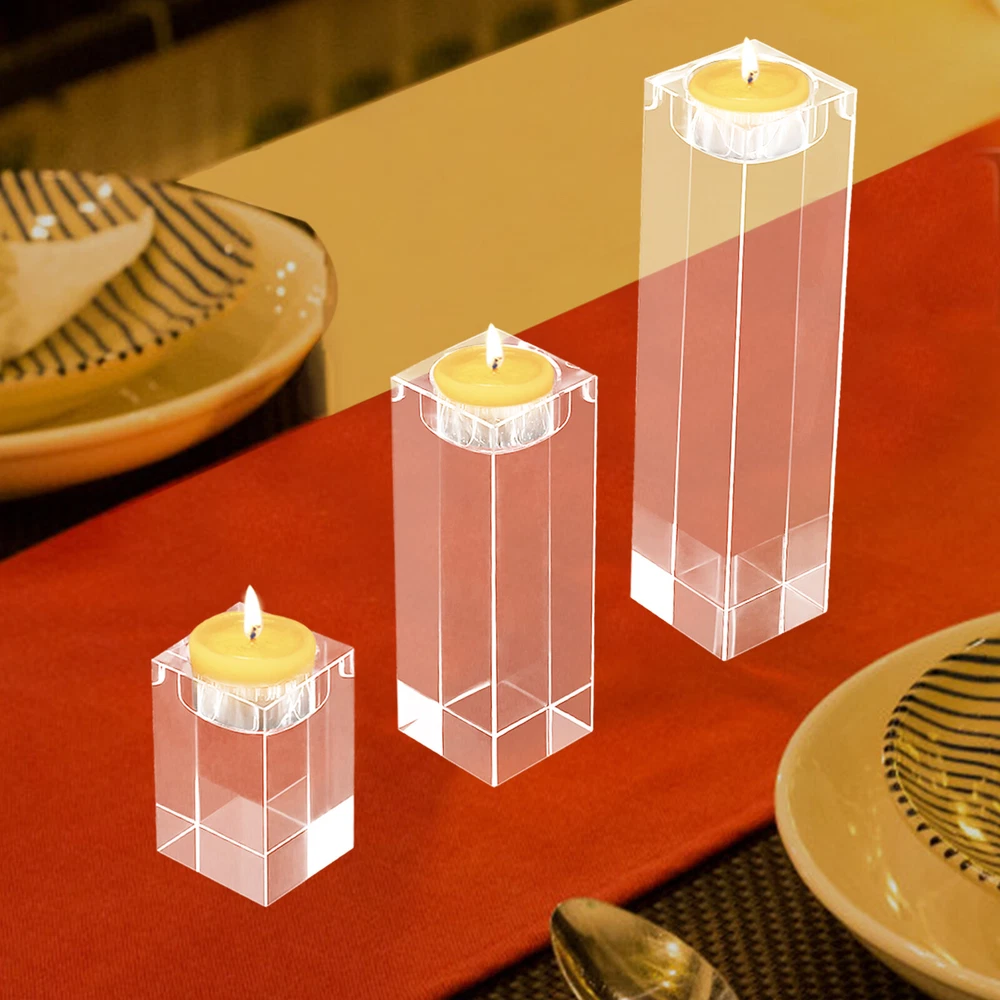 Set of 3 Glass Candle Holder, Crystal Clear Pillar Candle Stand 1.97"Square Description Our crystal candle holder is made of high-quality K9 crystal glass, which is sturdy and durable. You can place candles on top of it to create a cozy atmosphere for family gatherings or romantic candlelight dinners. With its generous appearance, it can easily blend into various occasions. In short, it can bring warmth to your living space and showcase your extraordinary taste in life. Key Features Sturdy and Durable: Made of K9 crystal glass, this product is not easily corroded, worn, or deformed, ensuring your long-term use. Atmosphere Maker: You can place candles(not included) on this product, and their beautiful light can create a warm and romantic atmosphere for your date or gathering. Generous Appearance: The clear color tone, columnar shape, and smooth lines give this product a generous appearance, making it easy to integrate into various interior decoration styles. Easy to Move: Its lightweight(4.41 lbs) allows you to move this product wherever you need it without spending too much time and effort. Ready to Use: This product is shaped in one piece, so you can use it directly without assembly. Simple Cleaning: It has a smooth surface and a simple structure, so you only need to wipe the dust with a towel after use. Ideal Gift: This practical product can be used as an ideal housewarming, birthday, and holiday gift for parents, friends, and loved ones. Customer Service: We stand behind all our guests and look forward to assisting you with your purchase. It is our pleasure to answer your confusion and questions. The end of the story between us is definitely not "we sell and you buy". Details Smooth Edge: The rounded and smooth edges not only add to the aesthetics of the product but also improve the safety of use. 3Pcs: 3 different sizes(1.97*1.97*7.87inches, 1.97*1.97*5.51inches, 1.97*1.97*3.15inches ) can meet your different usage needs and adapt to various occasions. Application It is suitable for tealights with a diameter of below 1.57 inches. It is ideal for weddings, Christmas, parties, birthdays, anniversaries, dating, candlelight dinners, fireplaces, dining & coffee tables, kitchens, living rooms, bathrooms, SPAs, hotels, and other occasions. Specifications Color: Clear Shape: Square Style: European Material: K9 Crystal Glass Assembly Required: No Mount Type: Tabletop Number of Items: 3 Applicable Tealight Diameter: Below 4cm/1.57in Product Size: 5*5*20cm/1.97*1.97*7.87in, 5*5*14cm/1.97*1.97*5.51in, 5*5*8cm/1.97*1.97*3.15in Package Size: 26*24*7cm/10.24*9.45*2.76in Gross Weight: 2.3kg/5.07lbs Net Weight: 2kg/4.41lbs Package Included 3* Crystal Candle Holders Notes Please note that this product does not include candles. Please double-check the size you need before ordering. Please allow the slight color difference caused by the shooting light and 1-3cm error due to manual measurement, and make sure you do not mind before you order. Payment Delivery details Terms of sales About us Contact us Payment We accept ebay payment 。 Fees such as import duties, taxes are not included in the item price or shipping costs. These charges are the buyer's responsibility. Delivery details Shipping: 2-9 working days to: USA Terms of sales We maintain high standards of excellence and strive for hundred percent customer satisfaction. Feedback is very important to us. We hope that you contact us immediately before you give neutral or negative feedback, so that we can address your concerns. It is impossible to address issues if we do not know about them! About us Your satis faction is our ultimate goal. We work hard to earn your trust and future business. Our certified technicians have tested each item before shipping. The unit comes with 1 year limited warranty on all manufacturing defects. a) If you receive a defective item, you may return it or ask for a discount. Please contact us within 14 days after you receive the package. b) What you returned must be intact and in its original packaging as re? u. Customer is responsible for shipping costs of the returned item. c) We will cover the cost of shipping back t with the shipping rate indicated in the registration page. We will send you a new unit or refund the full payment you paid. Thank you. Contact us Business Hour Business Hour: Monday To Friday: 8:30 AM to 5:00 PM (Beijing China time) Due to time zones, our reply to your questions may not be immediately. But within above working time, we will reply your email within 24 hours. If it's non-workdays, please kindly be patient and wait till Monday. Please contact us with ebay message. Please feel free to contact us if you have any questions. Monday To Friday: 8:30 AM to 5:00 PM (Beijing China time) Due to time zones, our reply to your questions may not be immediately. But within above working time, we will reply your email within 24 hours. If it's non-workdays, please kindly be patient and wait till Monday. Please contact us with ebay message. Please feel free to contact us if you have any questions.