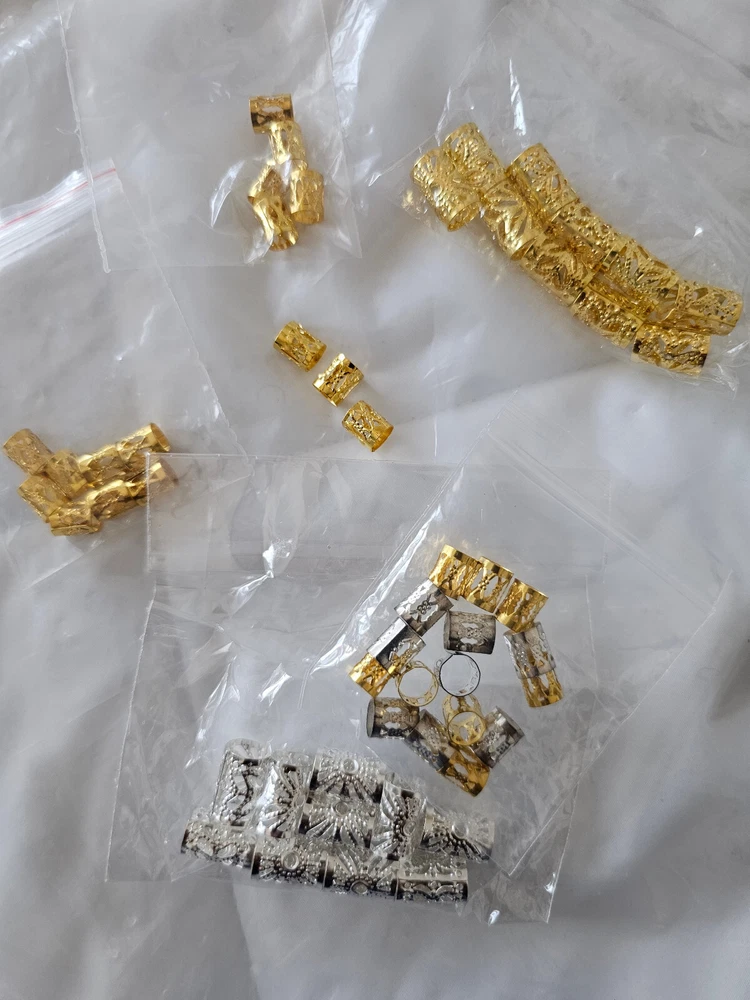 4 Pack s of Dreadlocks Beads Hair Braid Ring Gold & Silver and Multicolor