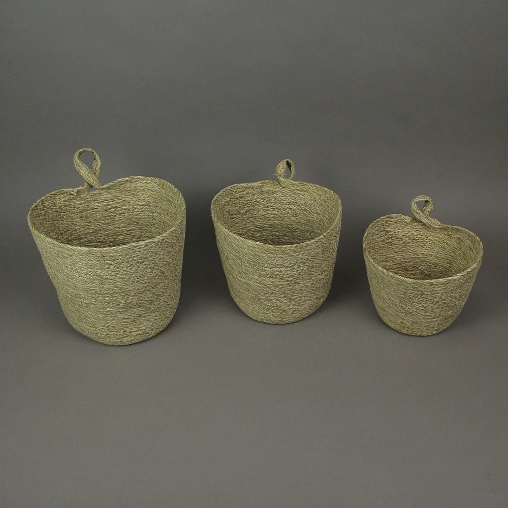 Add some rustic style to your home organization with this set of three woven hanging baskets. Creatively crafted from woven plant fiber, for a flexible basket with a natural look. The large measures 8.25 inches long, 8 inches wide, and 9 inches high; the medium measures 7.5 inches long, 7 inches wide, and 6.5 inches high; the small measures 6.5 inches long, 6.5 inches wide, 5.75 inches high; and each sport a simple loop for hanging. Whether displayed from a hook or resting on a countertop or end table, these baskets are a great way for storing small items, and towels, or display decorative orbs and other items. Our eBay Store About Us Add to Favorite Sellers Set of 3 Woven Hanging Basket Decorative Organizer Pockets Home Storage Decor OVERALL SIZE - Lg - (8.25 Inches Long, 8 Inches Wide, 9 Inches High); Md - (7.5 Inches Long, 7 Inches Wide, 6.5 Inches High); Sm - (6.5 Inches Long, 6.5 Inches Wide, 5.75 Inches High) CREATIVE CRAFTED - Woven Plant Fiber For Flexible And Long Lasting Baskets RUSTIC STYLE - A Great Natural Compliment To Farmhouse Styles MULTI-USE - Hang From A Hook Or Display On A Counter Top For A Variety Of Organizing Styles GREAT GIFT - For Yourself or Friends And Family Add some rustic style to your home organization with this set of three woven hanging baskets. Creatively crafted from woven plant fiber, for a flexible basket with a natural look. The large measures 8.25 inches long, 8 inches wide, and 9 inches high; the medium measures 7.5 inches long, 7 inches wide, and 6.5 inches high; the small measures 6.5 inches long, 6.5 inches wide, 5.75 inches high; and each sport a simple loop for hanging. Whether displayed from a hook or resting on a countertop or end table, these baskets are a great way for storing small items, and towels, or display decorative orbs and other items. Product Details Color Brown Height 9 Length 8.25 Weight 1.1 LB