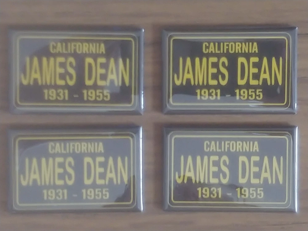 ---------- Up for sale is 1 (one) set of 4 high quality strong metal James Dean Magnets in the size of 2" X 3" (50mm x 75mm) Made in the USA. ----------