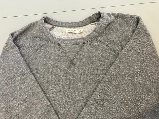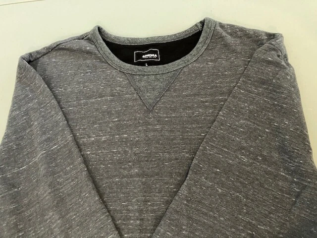 Set of 4 Men's Long Sleeve Shirts- Includes Urban Pipeline Dark Gray Thermal Shirt- Size L- 60% Cotton/40% Polyester; Sonoma Dark Gray Flecked Thermal Shirt- Size L- 60% Cotton/40% Polyester; Sonoma Dark Gray Flecked/Black Double Knit Shirt- Size L- 50% Rayon/30% Cotton/20% Polyester; Sonoma Light Gray Sweatshirt- Size L- 69% Cotton/20% Polyester/11% Rayon. In good condition for age and use. No rips or tears. No stains. See Photos.