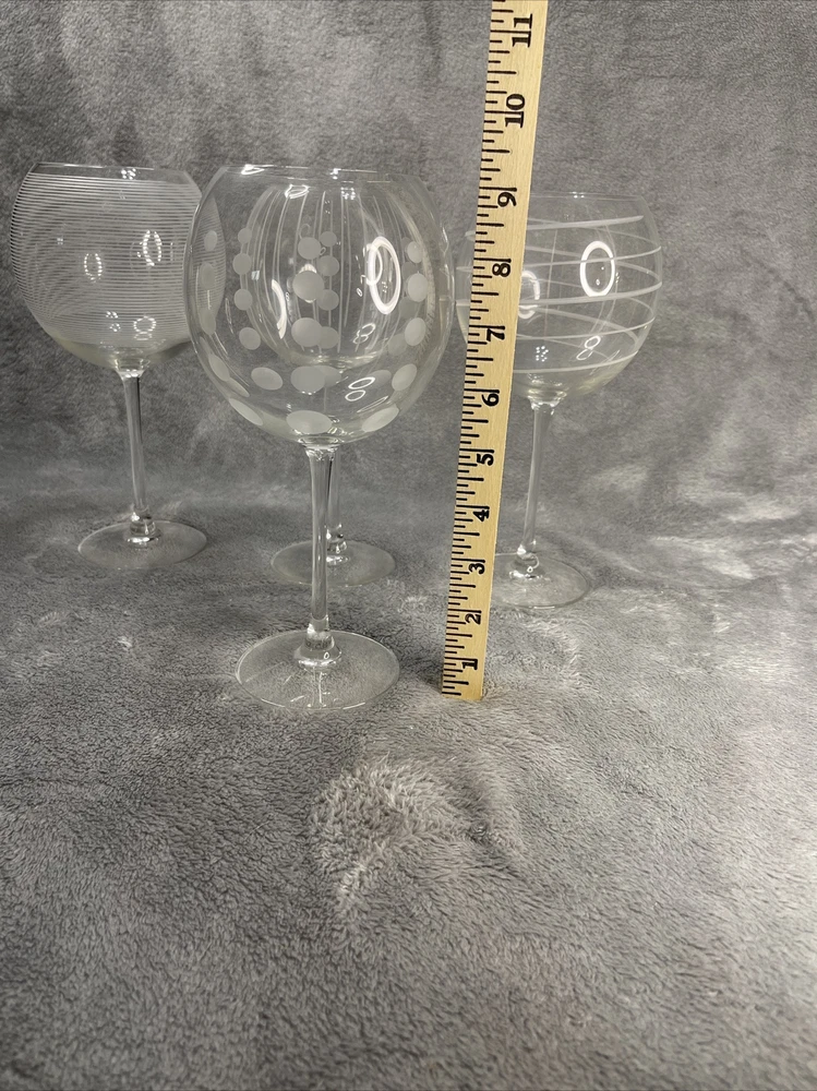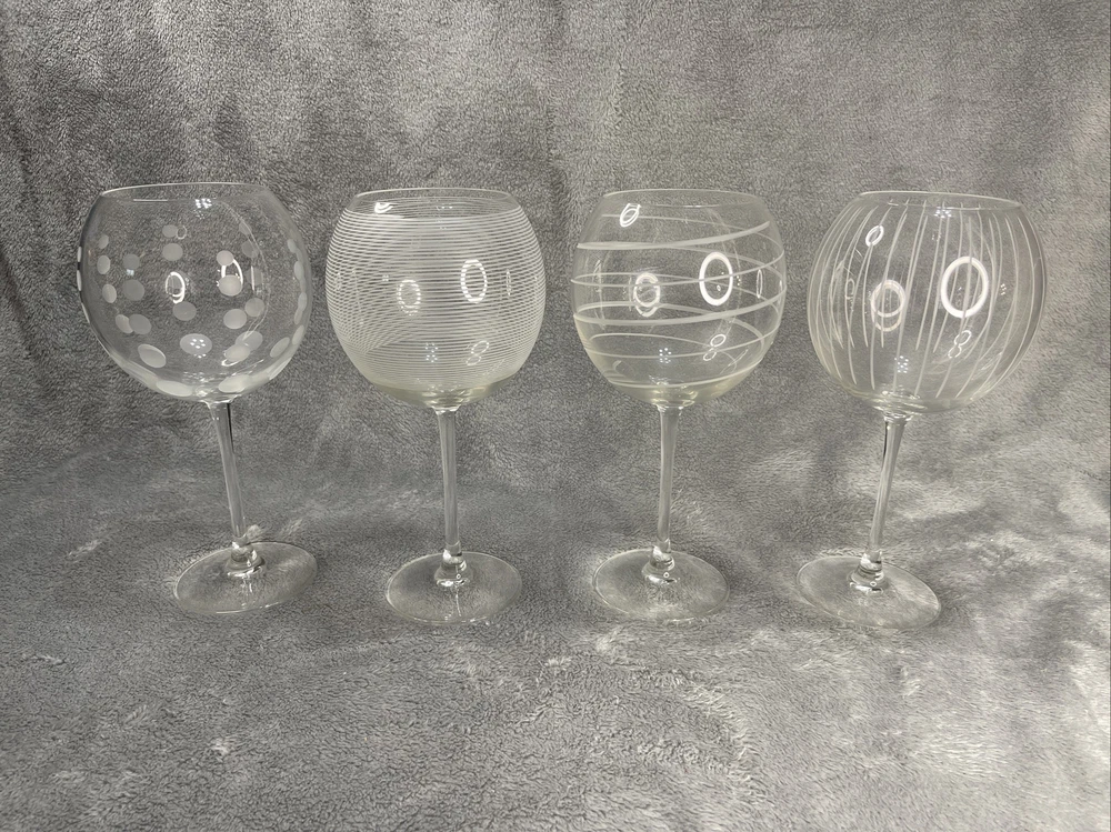 Elevate your drinking experience with these elegant Mikasa Cheers Balloon Wine Glasses. The set includes four glasses, each with a unique dotted, spiral, or lined pattern etched into the clear glass. With a height of 9 inches, these glasses are perfect for serving your favorite wine or cocktail. Crafted from high-quality glass material, this glassware set is a perfect addition to any kitchen or bar. Impress your guests with the stylish design and elevate your drinking experience with Mikasa Cheers Balloon Wine Glasses. This set also includes napkins to complete your sophisticated drinking experience.