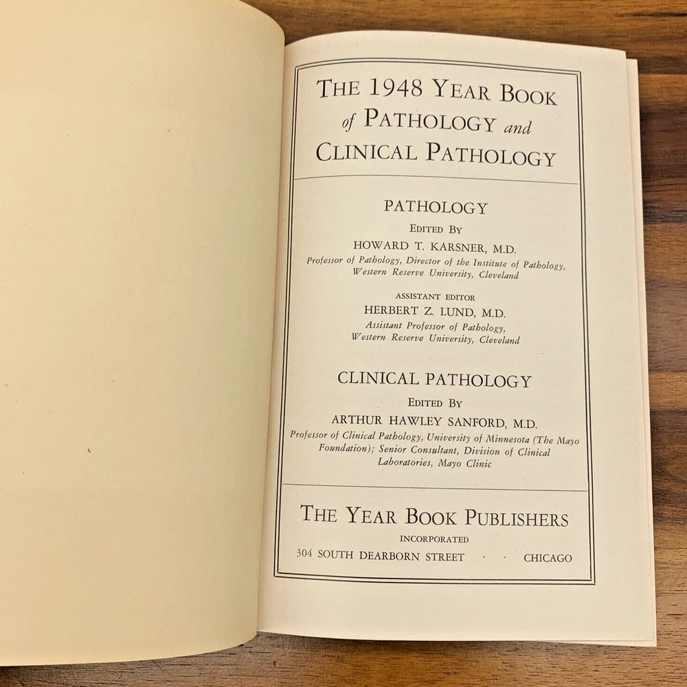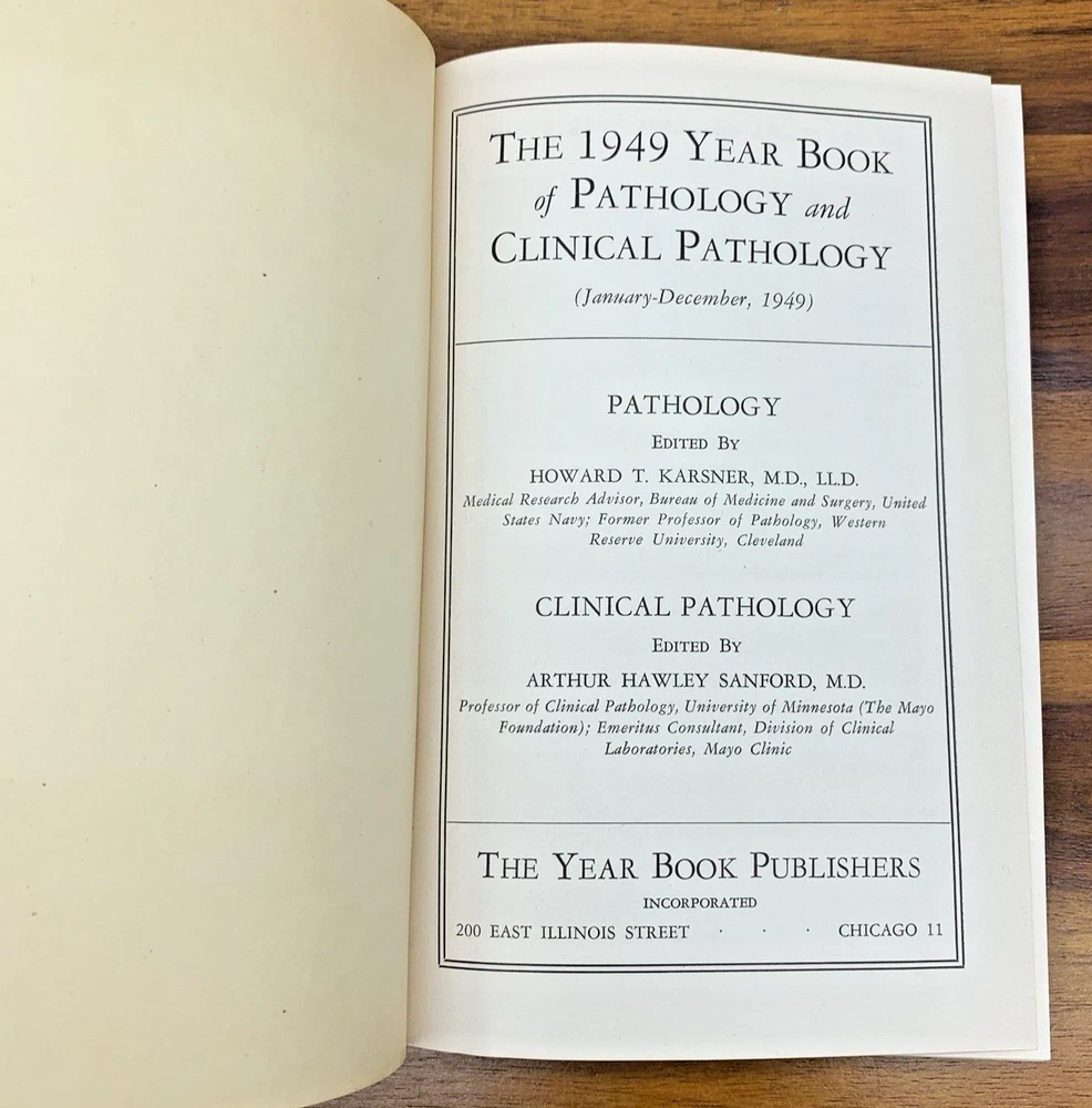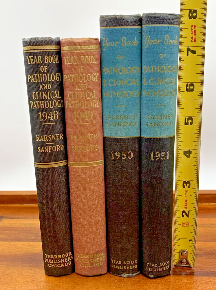 Set of 4 Year Book of Pathology Clinical Pathology 1948-51 Karsner Sanford Vintage 1940s 1950s Hardcover Hardback Good to Very Good overall vintage condition! Please see all of the photos for your review of condition. Only one book (1950) has three pages of underlining in pen. These are rare, very hard to find. Please zoom in on photos for a better view of the item's condition. We do our absolute best to research all items we sell. If you ever have questions, please reach out to me! We will always package items securely and with care. Thank you for viewing and please visit our store for more awesome vintage goodies!