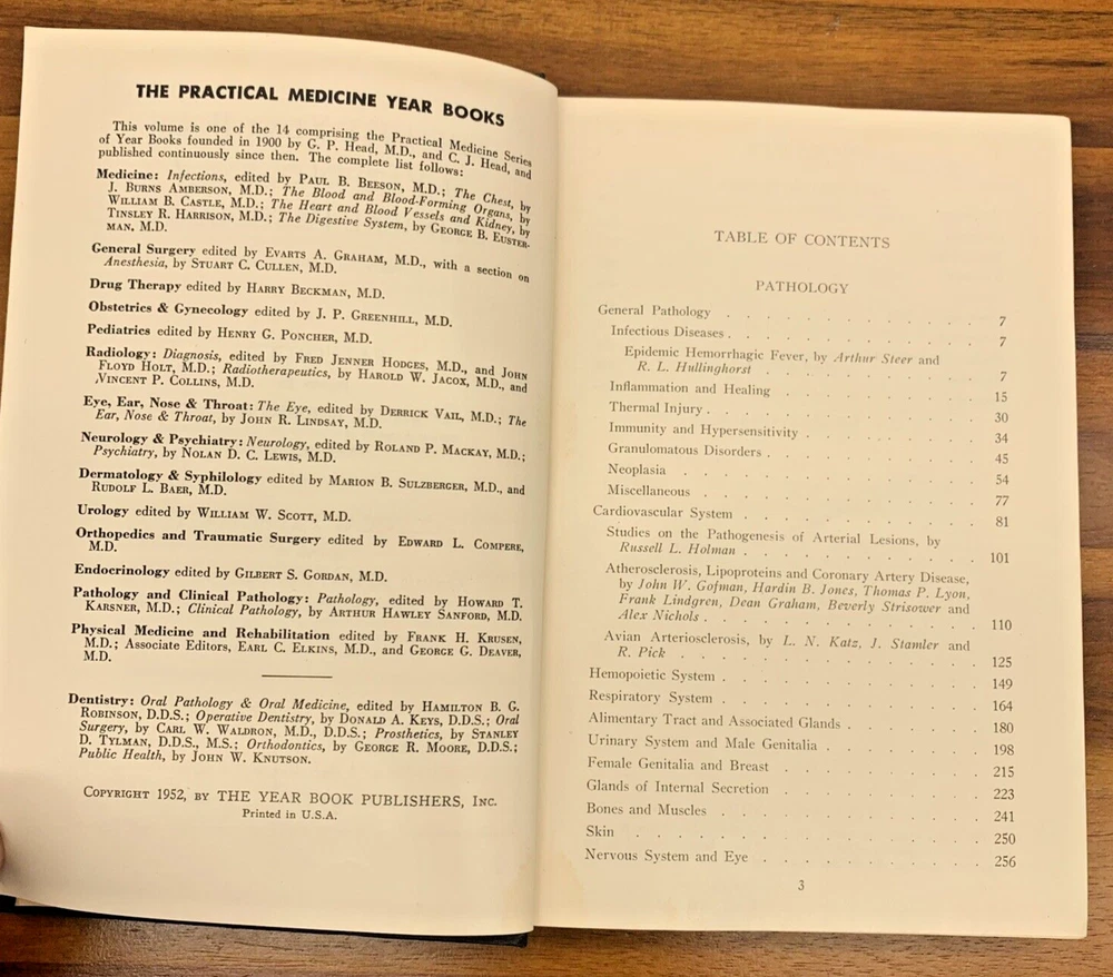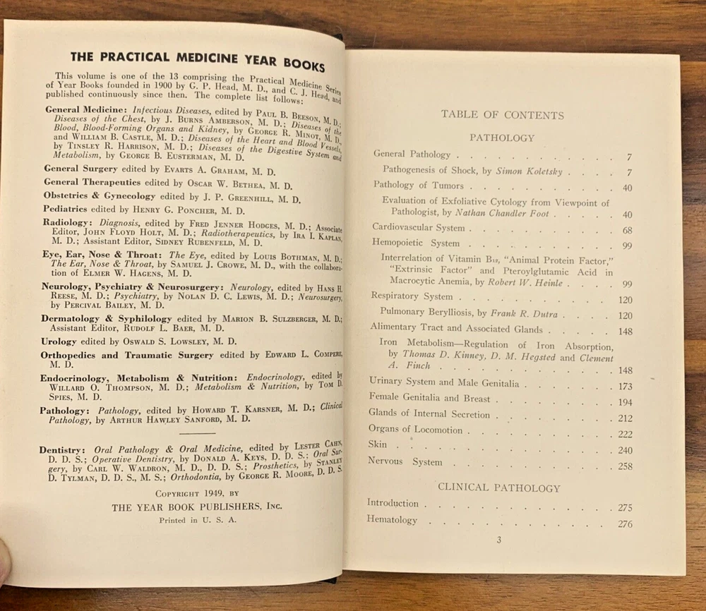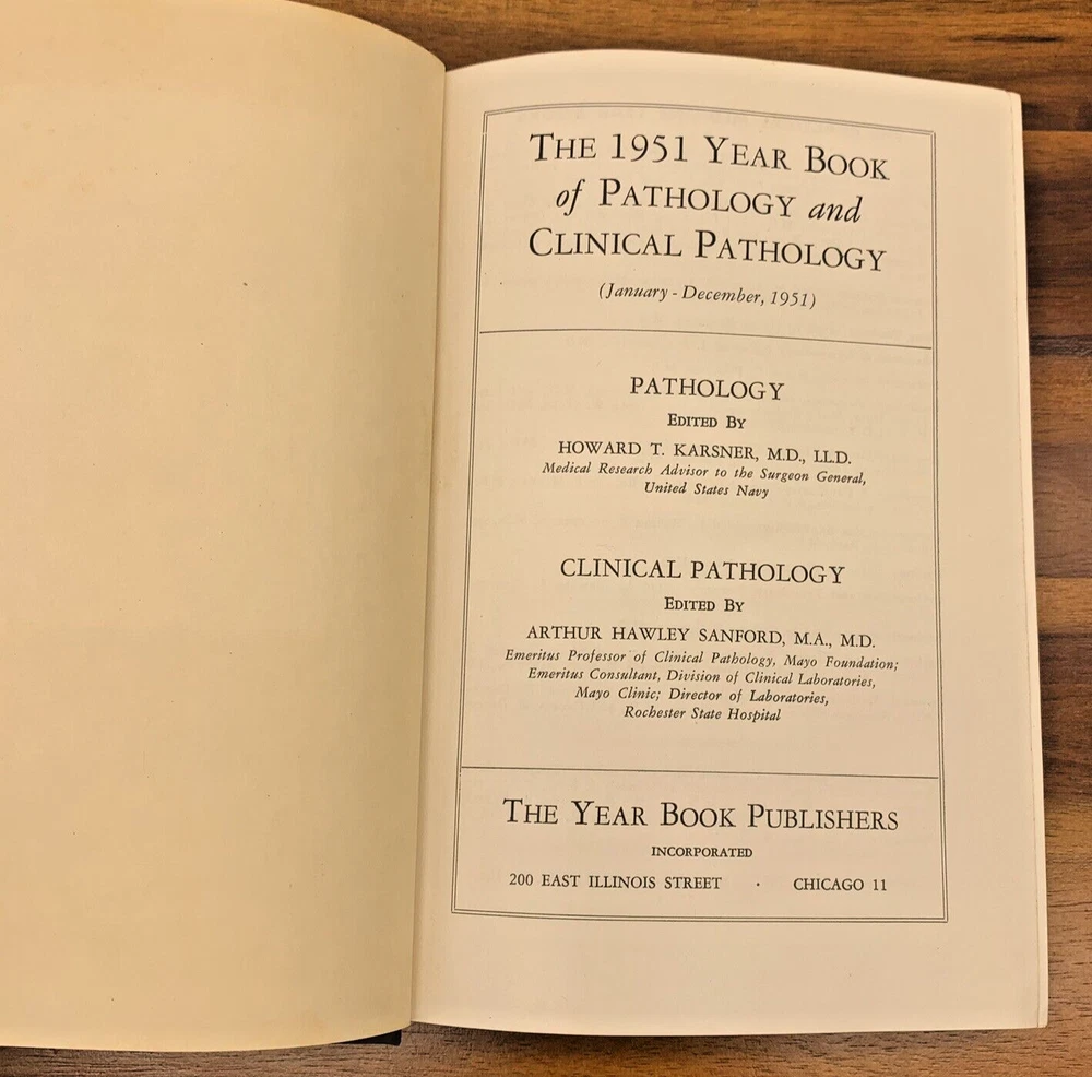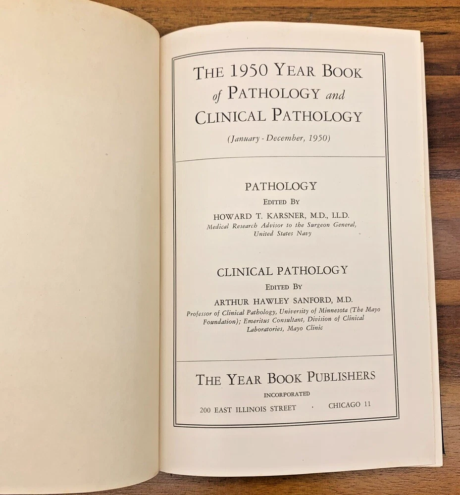 Set of 4 Year Book of Pathology Clinical Pathology 1948-51 Karsner Sanford Vintage 1940s 1950s Hardcover Hardback Good to Very Good overall vintage condition! Please see all of the photos for your review of condition. Only one book (1950) has three pages of underlining in pen. These are rare, very hard to find. Please zoom in on photos for a better view of the item's condition. We do our absolute best to research all items we sell. If you ever have questions, please reach out to me! We will always package items securely and with care. Thank you for viewing and please visit our store for more awesome vintage goodies!