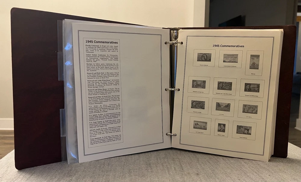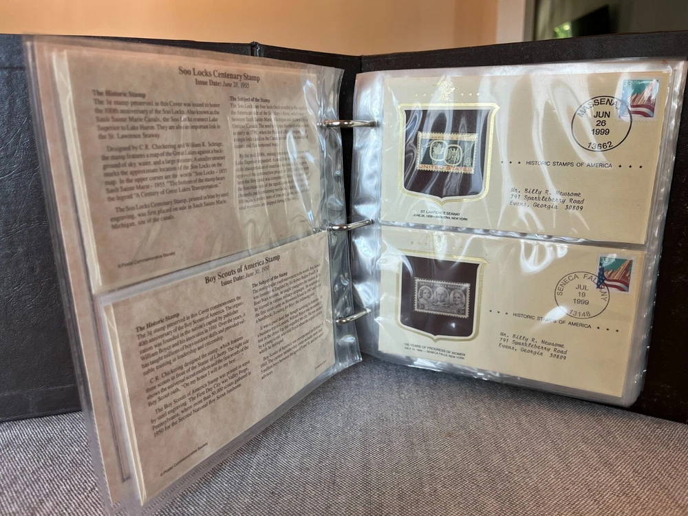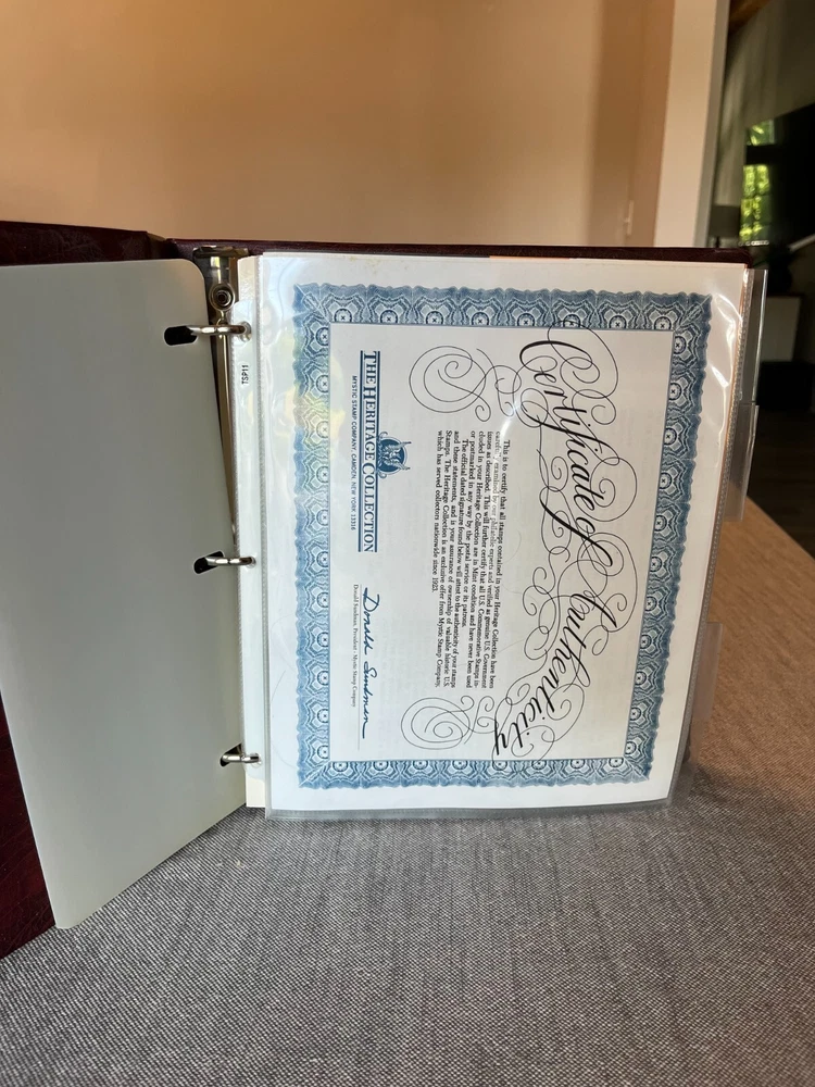 Set of 5 Stamp Book Collection Plus Bonus Stamps, Stamps in Mint Condition 23 mounted stamps in 1893-1934 heritage album ranging from 1930-1935 323 mounted stamps in 1935-1991 heritage album ranging from 1937-1994, plus 39 unmounted stamps 8 stamps in historic stamps of America album