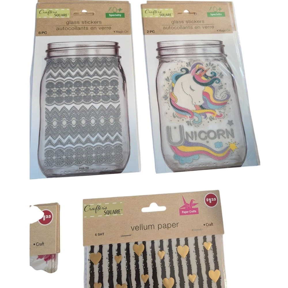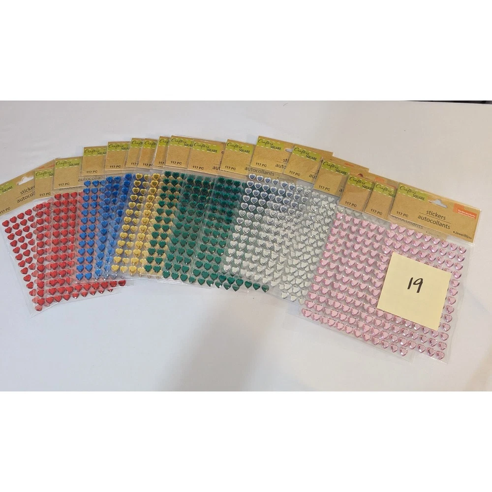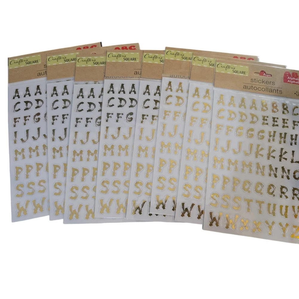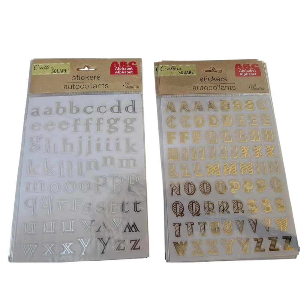 Set of 79 Packs of New Rhinestone Script Alphabet Stickers Set of 79 Packs Crafters Square There is a lot of different styles on the alphabet stickers. (See pics) Over $98.00 ratail for all of them. There is Glass stickers. (See pics) Vellum paper. I am selling all my craft supplies so if you are looking for other things, please let me know. I have alot! If you have any questions about this lot, please let me know as well.