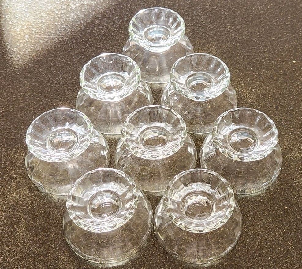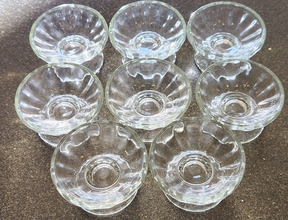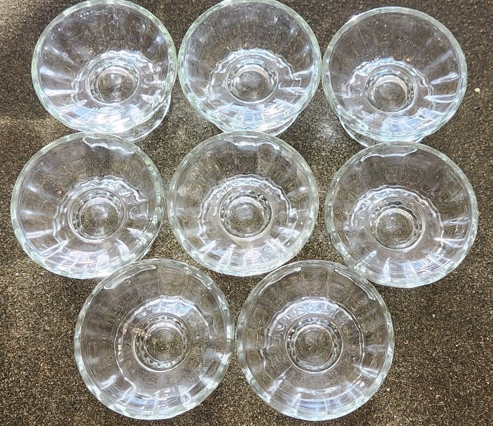 Set of 8 LIBBEY PANELED Clear Glass Ice Cream Dishes, Bowls 3.75 diameter 2.25 h