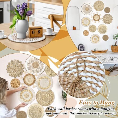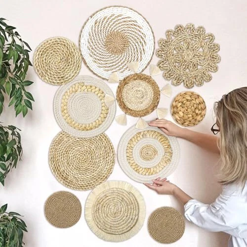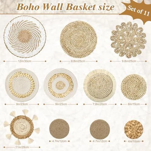 Return Policy Fast Delivery Trusted seller Set of 11 Boho Wall Basket Decor Wicker Woven Wall Basket Decorations Bohemian Handcrafted Round Basket Hanging decor Bulrush Wall Art Decors for Living Room Rustic Home Product Description 【Premium Basket】The boho woven wall basket decor is mainly knitted by bulrush and wicker, which is light but strong, boast excellent moisture resistance. With premium workmanship, each rustic basket not only has a high quality, but also has a distinct touch and rustic charm. The enjoyment and aesthetic is endless when you decorate your space with the hanging wicker basket. 【Woven Wall Basket Set and Size】Our boho basket wall decor set comes with 11 pieces woven wall hanging baskets, each in different styles and sizes. They are measure approx between 4 to 12 inches in diameter, which makes these baskets scattered layout, and brings you an unparalleled visual feast. 【Widely Occasions】Woven basket set is a deal alternation to artwork and craftsmanship. As a decoration, it is suitable for many occasions, such as bedrooms, living room, bathroom, kitchen, dorms, hotels corridor, restaurants, hallway and more. These wicker round wall baskets adorned with different styles that will attract to catch the eyes and bring classic feeling to all your visitors. 【Multiple Usages】Apart from as wall decorations, boho woven baskets also have multiple usages. You can use them to hold food, keys, fruits, and other things you want. Also, it is a great gift to your friends and families for birthday, anniversary, housewarming and holiday. It is nice that if you can use your imagination to discover more functions of the woven wall basket. 【Easy to Use】These boho wall basket decors are easy to apply, you can easy to hanging them directly on the wall with their woven ropes. Shipping Returns Payment Shipping Shipping is FREE to all addresses other than APO/PO boxes in the lower 48 states. All our stock ships from US-based warehouses. Shipped via USPS or UPS (depending on location and package weight) Unless stated otherwise, all orders will ship within 24-72 hours of your payment being processed. Check our feedback to see the great reviews of FAST shipping we offer. Returns Seller does not accept returns Payment We currently accept payment via eBay managed payments only. Once payment is cleared, we will dispatch your shipment within 1-3 business days. Please refer to the "Shipping" tab for more information regarding shipping speed to your destination.