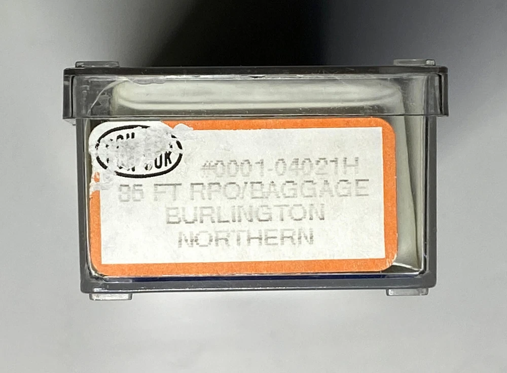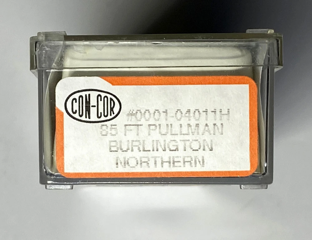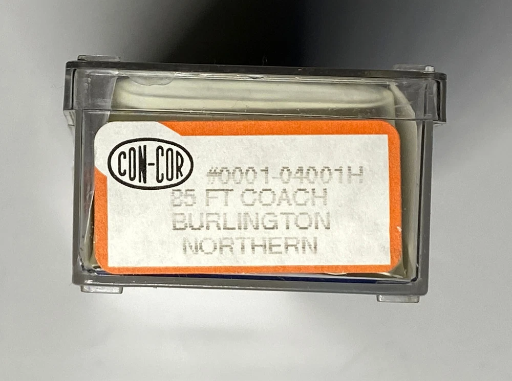 Set of Four (4) Con-Cor N Scale Burlington Northern Passengers cars, new in their original boxes. One (1) #0001-04001H - 85 ft Coach Car One (1) #0001-04011H - 85 ft Pullman Car One (1) #0001-04021H - 85 ft RPO/Baggage Car One (1) #0001-04041H - 85 ft Observation Car