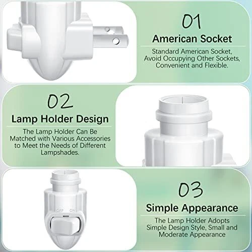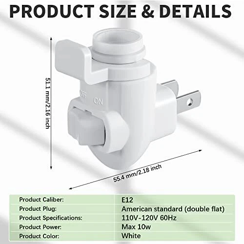 Return Policy Fast Delivery Trusted seller 50 Sets Plug in Night Light Module White Night Light Base with Shade Mounting Clip Plastic Lights Rotating Night Light Base for Making Your Own Decorative Night Lights Product Description Sufficient combination: you will receive 50 sets of night light bases with night light clips, total 100 pieces, sufficient to meet your need for replacement and repair Easy to install: the night light base is simple to install the incandescent light bulb or LED night light on it, and paste the light shade on the mounting clip, and then clip onto the plug in base Firm and reliable: the light socket base is made of quality plastic material, lightweight and solid, not easy to break; The night light rotating base is applicable for 110-120 V AC power, and can be connected to a maximum of 10 watt bulb, which can adapt to most home decorative lights Not occupying other sockets: measuring about 55.4 x 51.1 mm/ 2.18 x 2.01 inches, the rotating light base is compact to take up no space, convenient and flexible Widely applied: each night light rotating base with a night light clip is suitable for bedside lamp, little night lamp, decorative light, LED wall light, night light with sensor and so on; The white color can nicely blend into your walls and different styles of home Shipping Returns Payment Shipping Shipping is FREE to all addresses other than APO/PO boxes in the lower 48 states. All our stock ships from US-based warehouses. Shipped via USPS or UPS (depending on location and package weight) Unless stated otherwise, all orders will ship within 24-72 hours of your payment being processed. Check our feedback to see the great reviews of FAST shipping we offer. Returns Seller does not accept returns Payment We currently accept payment via eBay managed payments only. Once payment is cleared, we will dispatch your shipment within 1-3 business days. Please refer to the "Shipping" tab for more information regarding shipping speed to your destination.