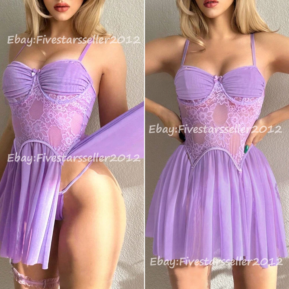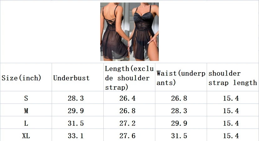 Modal Night Dress: 95% Cotton, 5% Spandex Material:This lace lingerie is made of 95% cotton 5% spandex,the sexy nightie is very silky,soft,flows,comfy,and stretchy to wear,it's comfortable, the material has a hugging-like effect . Women sexy full slip sleepwear lingerie set be the sexiest bedtime babe in this cute soft babydoll. Babydoll nightgown features deep V-neck lace, it fits perfectly your chest and show charming breast curve,adjustable straps will ensure you a best fit. Unique Design:Lace chemise is design of dual front side slits will perfect show your sexy leg curve.Hollowed back design makes you look very slim, sets off the shoulder and neck lines, shows your sexy butterfly bones, makes the whole back very sexy, and deeply attracts the attention of your lover. Occasion:Nightwear,Modal nightgown,Modal sleepwear,Loungewear,Chemise Dress,Night gown perfect for wedding night,honeymoon, anniversary trip,bedroom,Boudoir shoot,Valentine's Day,bathroom or every special night. Package Content: 1 x Women sleepwear (No Thong) Size Size US UK EU Under Bust Waist Length M Medium 6 10 36 74~96cm 72cm 69cm L Large 8 12 38 78~100cm 76cm 70cm XL X-Large 10 14 40 82~104cm 80cm 71cm XXL XX-Large 12 16 42 86~108cm 84cm 72cm Satin Lace Nightdress: 65% Polyester, 35% Nylon Hand Wash Only The upper part of the chest is made of opaque silk with underwired,push up bra mesh split hem dress with panty Fabric: Soft & comfy, fabric is very stretch Feature: Split, sheer mesh, nightwear dress, fashionable Occasion: Sleepwear, Nightwear. Suit for Wedding Night, Honeymoon, Valentine's Day Package Content:1* Sexy Babydoll Lingerie(No G-String Thong)