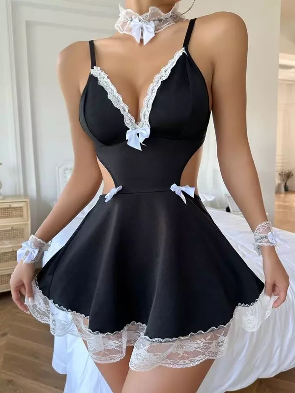Maid-A/B : 85%Ployester 15%Acrylic Imported Material: Stretchy and soft silk material, very comfortable to wear Great ideal for party, wedding night, honeymoon, a nniversary gifts and every special nights Hand washing or machine washing with lingerie bag Please refer to the size measurement in image before o rdering Package Content:Dress*1+Panty*1+Chocker*1+Lace Cuffs Maid-C : Material: 65%cotton + 35%polyester, ultra smooth touch feeling, hollow out, lace, bow, ruched details design. French maid outfit, sheer fabric with lace apron design makes you more sexy and to spice up bedroom activities Unique design for women, perfect for honeymoon night, wedding nights, lingerie party, anniversaries, valentine's day, bedroom, sleeping, bathing, or special nights, It will make you more stunning Package Include: 1 x Women one piece Lace Bodysuit (other accessories are not included) Maid-D : 👩❤️👨Sexy maid lingerie for women is made of 95%rayon5%spandex,it is soft and comfy to wear. it has a good amount of stretch. 👩❤️👨Maid lingerie for women features with a white headband.A removable choker.Deep v neck self tie bra with white lace trim.A high waist mini skirt with white lace trim at the bottom,matching with G-string panty and apron. It makes your so lovely and charming in front of your lover. 👩❤️👨Sexy Roleplay Lingerie Set has unique design:the chocker apron and headband can be removed. It can be your favorite cosplay set and also a casual outfit 👩❤️👨The cosplay lingerie is suitable for nightwear, night club wear, party, Halloween festival clothing Nightclub, Cosplay party,Bedroom,Special night etc.Student lingerie is makes you more sexy and naughty 👩❤️👨Package Include: 1 x sexy maid outfit with apron,1 x Free chocker Maid-E : 85%Ployester 15%Acrylic Imported Material: Stretchy and soft silk material, very comfortable to wear Great ideal for party, wedding night, honeymoon, anniversary gifts and every special nights Hand washing or machine washing with lingerie bag Please refer to the size measurement in image before o rdering Package Content:Maid Dress*1