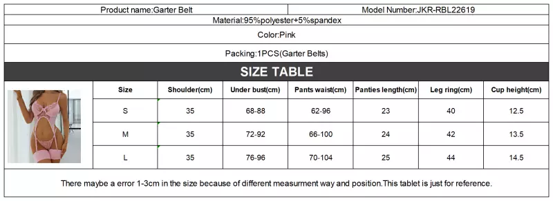 Colour: Pink Type: Sexy Lingerieset Pattern type: Single color Style: Sexy Type panty: String Number of pieces: 3 pieces sets Size: Length size Details: Contrast kant Dust: Stretch Underwear and sleepwear users: Couple, Teenager, Bride, Bridesmaid Maintenance instructions: Hand wash, do not dry clean Zak: Nee Tops Material: Kant Tops Composition: 95% Polyester, 5% Elastane