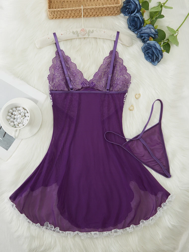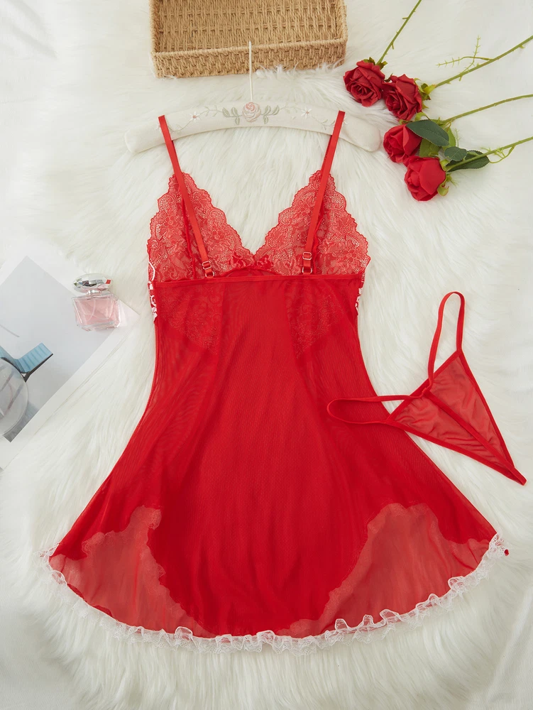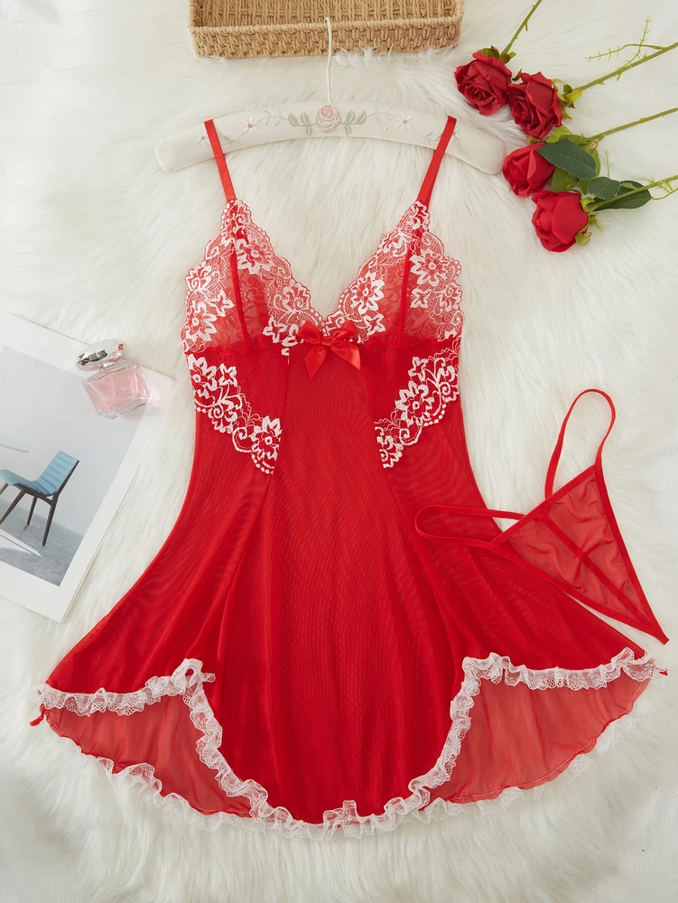 Feature: Brand new and high quality Material: Lace and Polyester . lace lingerie for women babydoll, lace chemise lingerie, maternity lingerie, nighties for women sexy, women sleepwear, women nightwear, langery for women sexy, negligee lingerie Style: women deep v neck lingerie lace mesh see through babydoll set with G-string featuring floral lace cups, lace trim, Occasion: Sleepwear, Nightwear. Perfect for wedding night, honeymoon, lingerie party, anniversaries, valentine's day, bedroom, sleeping, bridal shower gifts, or every hot night, it will make you more attractive and charming Size:S/M/L/XL/2XL Color:AS SHOW Package Included: 1*Sexy Lingerie Set