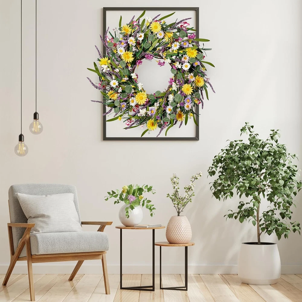 This gorgeous wreath instantly brightens up any space with its vibrant mix of daisies, lavender, and wildflowers. The colors are so lifelike, and the sturdy grapevine base holds up perfectly. It’s lightweight yet durable, making it ideal for doors, walls, or weddings. The lush floral arrangement adds a fresh, cheerful touch—perfect for spring and summer decor. Love how realistic it looks without any upkeep!