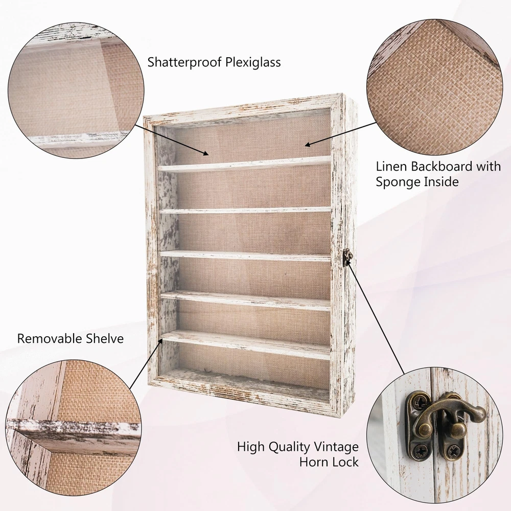 【Big Shadow Box with Shelves】several shelves inside the hinged shadow box display case, which you can and display miniatures, figurines sets, badges, coins, seashell,starfishs,beach memorabilia,antique. Display Case with Adjustable Shelves: There are 5 detachable shelves in the deep display case. You can take off or put on the shelves freely, and it becomes black shadow box or display shelf. High-Quality Materials: The 12” x 16” x 2.2'' deep depth shadow box comes with a solid, durable wood frame, woven fabric interior with 10 stick pins, hasp horn lock door with a transparent arcylic window, and metal sawtooth hanging hooks on its back. Multipurpose Display Box: acrylic display case Display all of your items in this lovely box. Transforming each shadowbox to your taste is a breeze and gives any home or office a nice personal touch. Whether the occasion is for a wedding, birthday, new home, mother's Day, father's day, Memorial Day, or Christmas, this wood memorial box is perfect for any gift-giving occasion. This antique, decorative case looks great as a stand-alone piece or added to a collection. Unique Giving: To be honest, large shadow box frame with removable shelves is always ideal gift for Valentines Day Mothers Day Fathers Day Halloween Thanksgiving Day Christmas New Years Day. Rest Assured Purchase: If at any time our product does not meet your expectations, simply let me know to solve the problem.