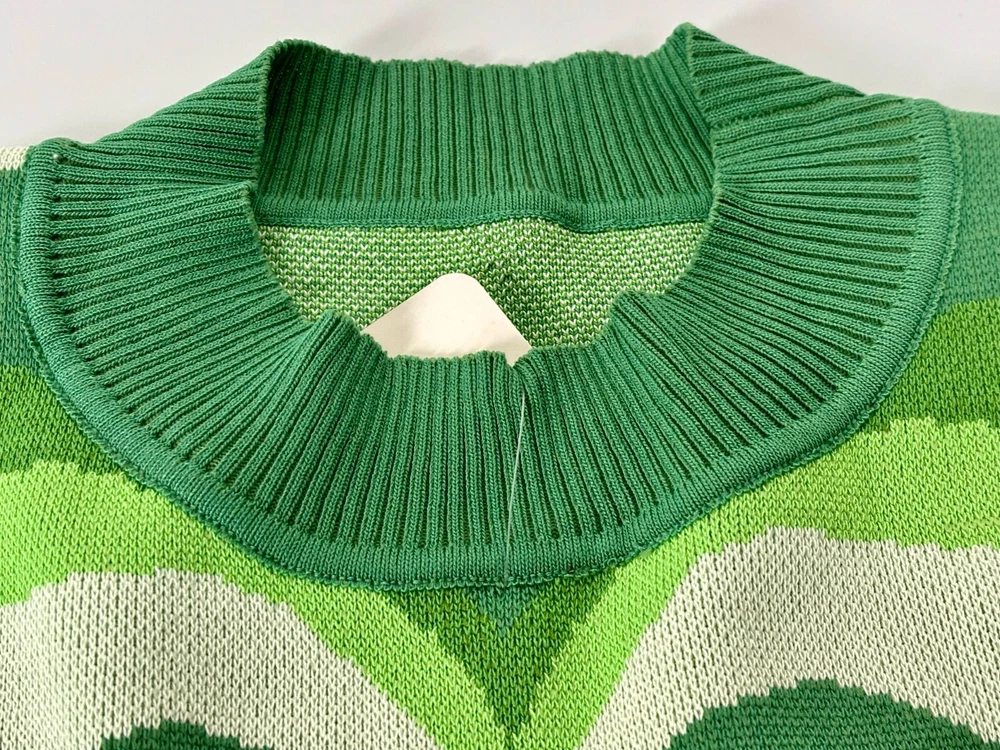 Shamrock Cropped Sweater Women's Size S Ribbed Crew Neck Green and White Y2K. Sweater is unbranded but just has a really cool look to it. See photos for measurements. We offer combined shipping to help save you some money!! (Simply reach out to me to apply discount) PLEASE NOTE: Colors may differ slightly in shade from photos to actual item. We greatly appreciate your business! Please remember to leave positive feedback if you are happy with your purchase! Thanks for looking!