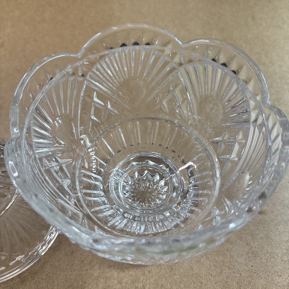 Elevate your display with the Shannon Crystal Covered Candy Dish, a piece that exudes vintage elegance. Masterfully crafted in Slovakia, this dish showcases the meticulous workmanship characteristic of fine crystal glassware. The heavy cut crystal design, including the iconic "Freedom" pattern, refracts light beautifully, creating a sparkling display on any surface. With its pristine clear color, this vintage original by Shannon Crystal adds a touch of sophistication to your home. Whether used for special occasions or as a permanent addition to your decor, this candy dish is a testament to timeless style and quality craftsmanship. Perfect for those who appreciate the artistry of cut glassware.