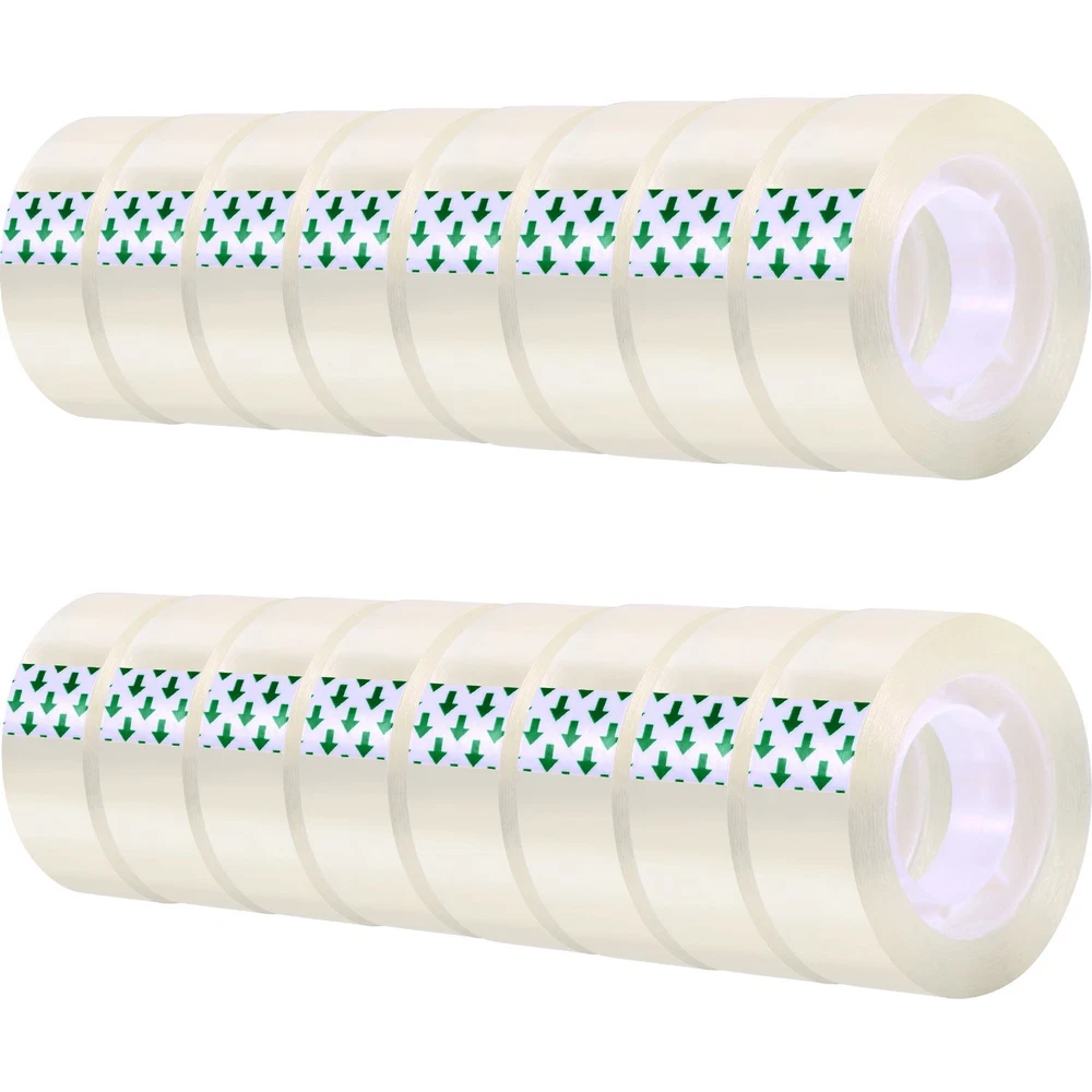 16 Pack transparent tape clear tape, each roll 3/ 4 x 1200 inches Clear tape rolls: The transparent tape features good concealment at the same time while it meets the needs of application. Use easily: The clear tape roll fits standard spindle tape dispensers, easy to cut and use. Suitable scenes: The transparent tape fits standard spindle tape dispensers; Note: the inner diameter of the tape reel is 0.94 inch/ 2.4 cm, so please use the the spindle tape dispensers whose inner diameter is small than 0.94 inch/ 2.4 cm, easy to cut and use. Specification: Width: 3/ 4 inch/ 18 mm Length: 1200 inch/ 30.5 m Color: clear Quantity: 16 packs Package includes: 16 x Clear tapes What You Get: our package contains a total of 16 rolls, each measuring 3/ 4 inches/ 18 mm in width and 1200 inches/ 30.5 m in length; The generous amount ensures you will have enough tape for multiple uses without running out quickly, making it an economical choice for office, school or home use Reliable Transparency: each roll of tape features a clear color that makes it an ideal choice for a variety of applications; Warm notice: the tape color is clear, but due to the color of the adhesive is a little yellow, so overall, the tape will be a little yellow Refill Easily: the transparent tape fits standard spindle tape dispensers; The inner diameter of the tape reel is 0.94 inch/ 2.4 cm, so please use the the spindle tape dispensers whose inner diameter is small than 0.94 inch/ 2.4 cm, easy to cut and use Excellent Concealment: the transparent tape will not cover the text or pattern on the book when applied, very suitable for repairing damaged documents, with excellent adhesion, very sticky, smooth and shiny surface Wide Range of Uses: the tape can be applied not only to repair documents, but also for gift wrapping, handicrafts, pasting photos, sealing envelopes and many other items; It is a good helper in the office, school and daily life