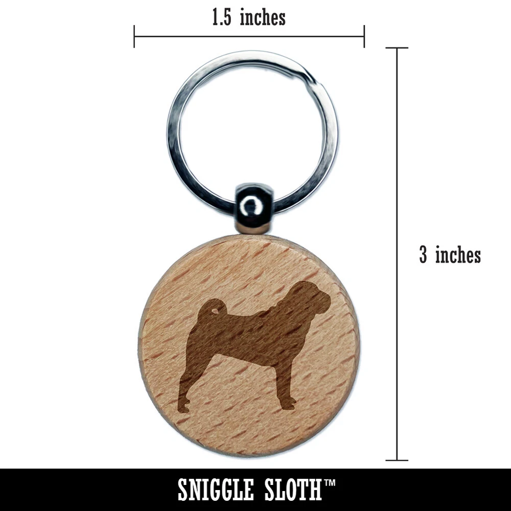Shar-Pei Dog Solid Engraved Wood Round Keychain Tag Charm