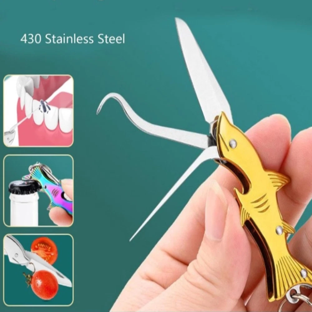 Shark Keychain Pocket Knife Bottle Opener Multifunctional Toothpick Outdoor Camping FAST FREE SIPPING Brand new and high quality Multifunctional Toothpick Knife Keychain – a powerhouse of functionality, convenience, and style, compactly designed for everyday carry Colors : GOLD/BRONZE, SILVER, IRIDIUM Package Included: 1* Knife Tool Material: Stainless steel made blade, sharp and solid. Handy to use, easy to folding and unfolding. Meet most of daily needs about knife - open carton boxes, cut small rope, etc. Creative design Shark shape folding knife, perfect for daily life . Unique Fish style design, pocket size. Features 100% Brand new Mini Fish shaped folding knife pocket knife, anti-wear, anti-rust, nice quality and real sharp Best for your pocket and backpack. Compact and easy to carry, sharp stainless steel blade, curve belly great for cutting, slicing, peeling, etc. Practical knife cutter peeler EDC tools, multi-use portable knife, fruit knife, outdoor survival knives, emergency defensive knife, camping knife, etc. Apply to various usage: Package/Box/Letter opening, camping, fishing, peeler, climbing, travelling, utility blade. GREAT GIFT IDEA PERFECT FRIENDSHIP GIFT - Great as a Friendship Gift, Father's Day gift, graduation gift, wedding or groomsman gift, golf tournaments, corporate gifts, etc. Specifications GMS knife Blade Material: 430 steel Handle Material: Aluminum/Bronze Full Length: 4.13''+ Inch Blade Length: 1.57'' Inch Blade Width: 1 0mm Blade Thickness: 2mm Package Included 1 x Folding Knife + Jewelry Pouch (As pictured) Please visit my store for more items https://www.ebay.com/str/ thegoodmanservice Payment: We accept PayPal payment only! Payments must be made within 2 days after you have won and committed to item purchase. We reserve the right to cancel the transaction if timely payment is not received. We ship to any VALID address, please add your shipping address into your PayPal account prior to make purchase We DO NOT change delivery address after payment is made or while en route to original . If your shipping address is not the one listed on your payment, we can help you to cancel the order first and place a new order with correct address. Serious buyer only. Non-paying bidder will be reported to ebay and ebay unpaid strike will be followed. Return Policy: Return must be requested within 3 days of item delivery. Buyer is responsible for return shipping. Item MUST be in the same NEW condition and UNOPENED packaging 20% of original selling price will be charged for returned item as reinstock fee. We DO NOT waive restock fee under any circumstances. Any type of mail fraud will lead to legal ramification. Refund will be processed after we receive the returned item and verify its status. We reserve the right to charge extra fees if item returned is damaged or intentionally abused. We reserve the right of final explanation of the return policy Feedback -At GoodMan Service we strive for 100% customer satisfaction. If you are not satisfied do not leave negative feedback in retaliation for a defective product or something you were not expecting. Please just contact us through Ebay messages and we will quickly resolve the matter. Also always remember to leave 5 stars for each of the 4 categories when leaving feedback.
