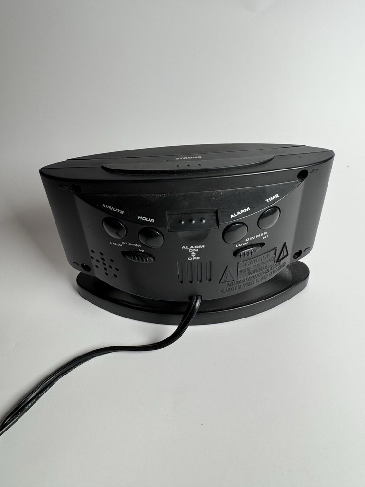 Sharp digital alarm clock with LED display, snooze, dimmer, and adjustable alarm volume. Reliable and easy to use.