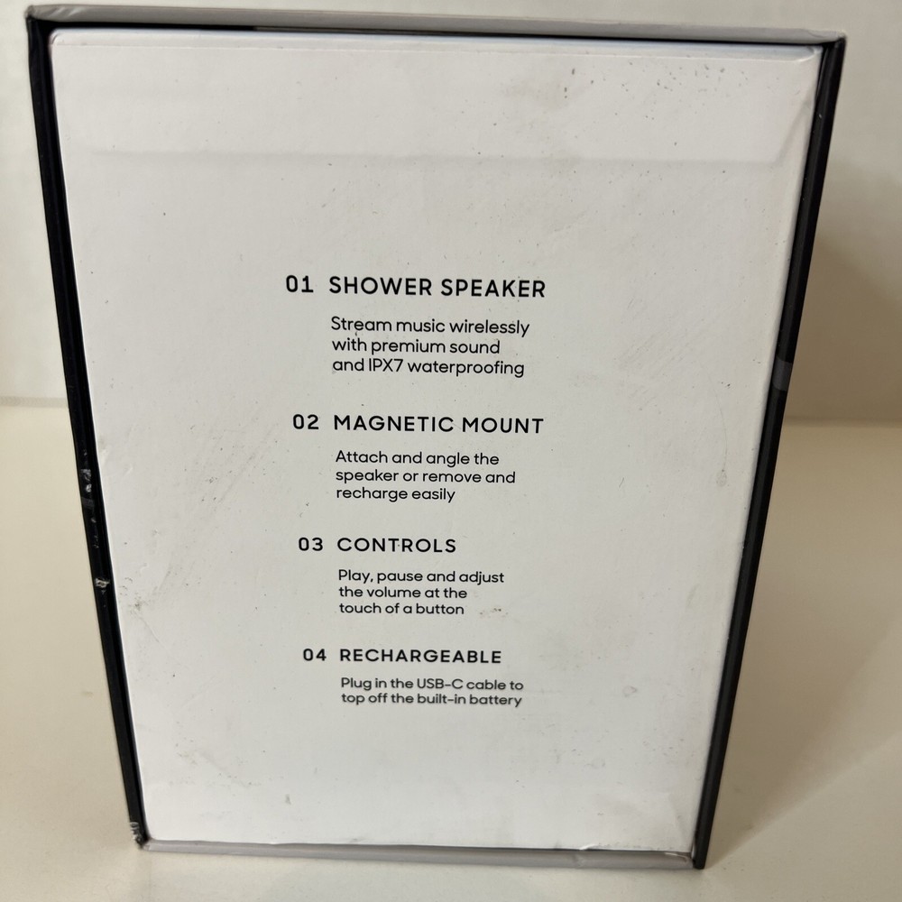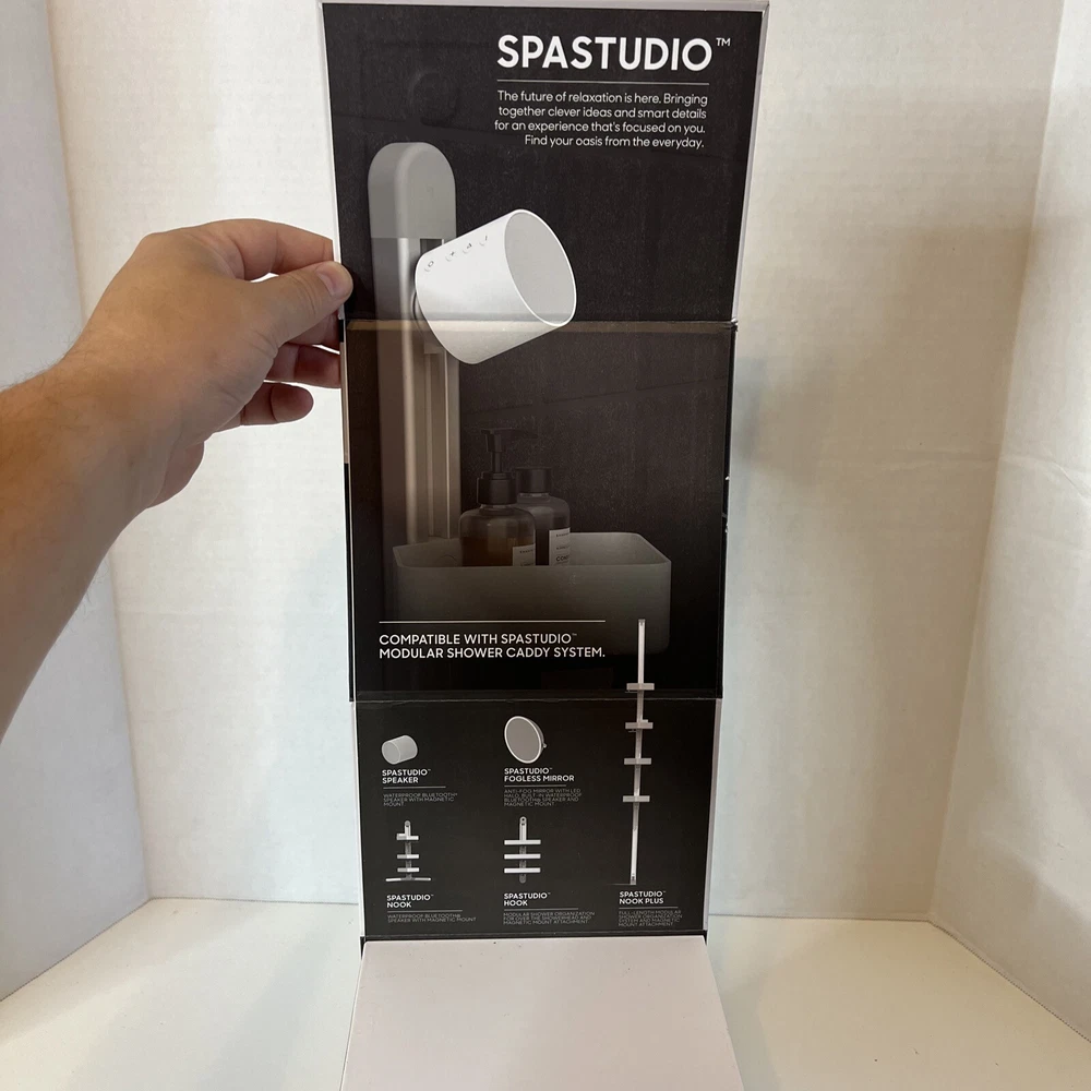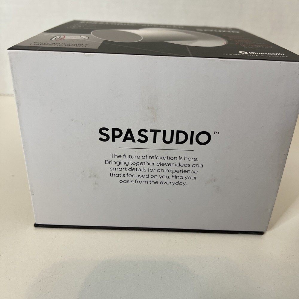 The Sharper Image Spastudio Shower Speaker is a wireless Bluetooth speaker designed for use in the shower. It features a waterproof design and a convenient magnetic mount for easy installation in the shower area. The speaker has a rechargeable battery with a USB-C port for charging and offers a crisp and clear audio experience. With its sleek white color and modern design, the Spastudio Speaker is a versatile and practical audio accessory for those who enjoy listening to music or podcasts while showering.