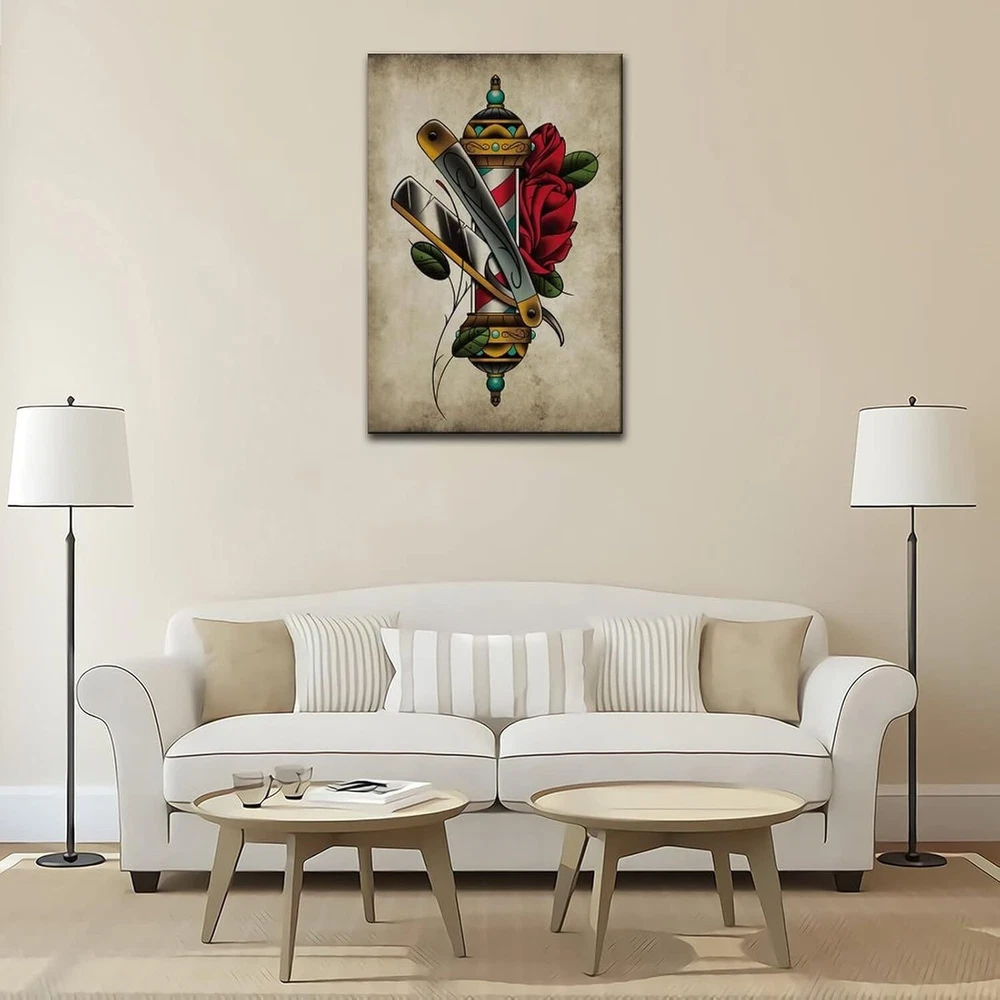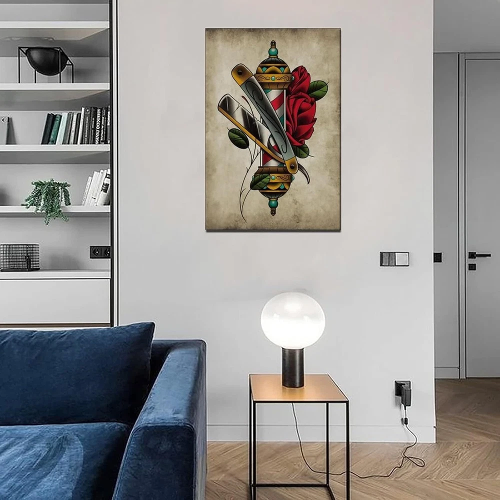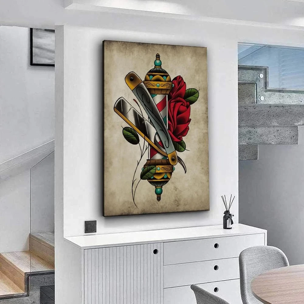Shave And A Haircut, Barber Pole, Neo-Traditional Tattoo Flash, Old School Art