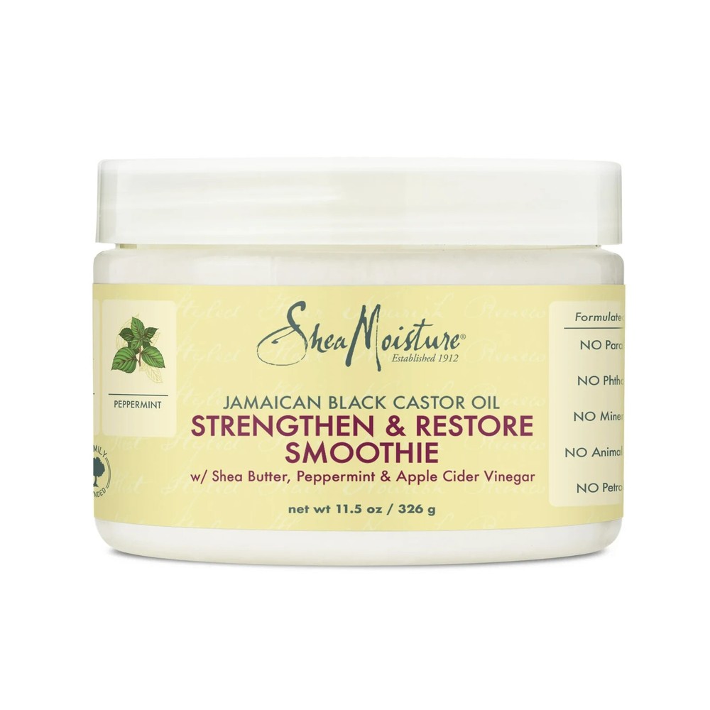 Moisturize and define big, bouncy natural curls, or smooth chemically processed, heat styled or damaged hair with this rich emollient smoothie restore styling cream. This hair styling cream and curl defining cream has a strengthening formula delivers healthy moisture to damaged, brittle hair while defining curls and reducing frizz. Hair cream formulated with Organic Shea Butter, Jamaican Black Castor Oil and Peppermint to help restore damaged hair and with frizz control.