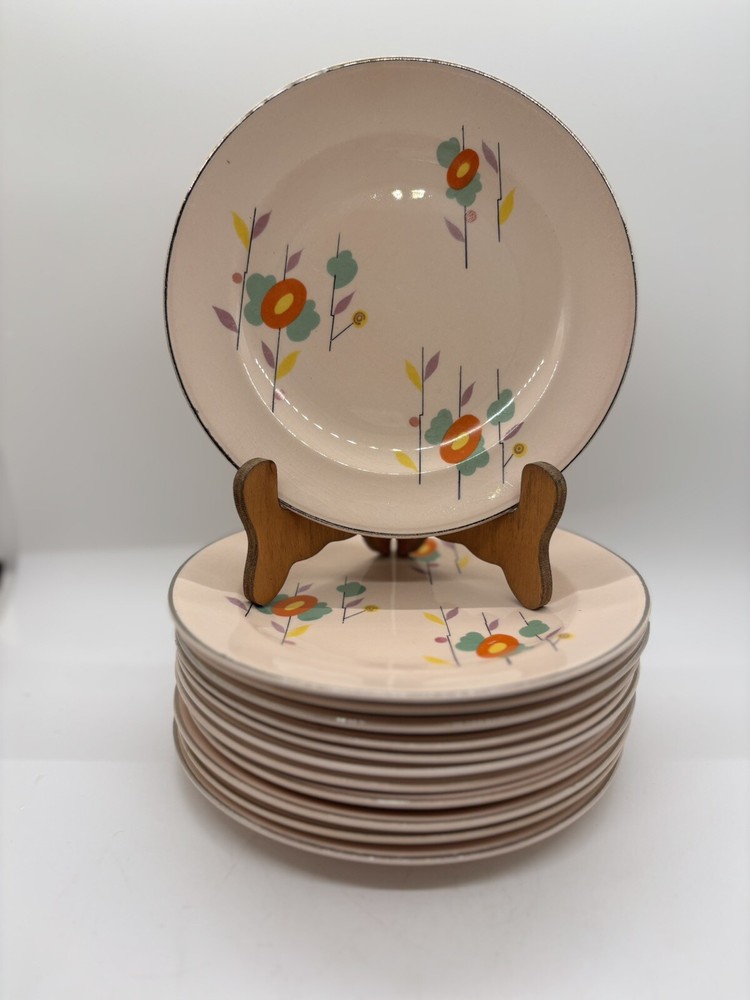 These dessert plates are absolutely charming! The soft shell pink color and delicate Fleur LaBelle design add such a lovely vintage touch. Despite some light crazing and wear, they’re in fantastic condition—no chips or cracks. Perfect for adding a sweet, nostalgic vibe to tea parties or dessert displays. A great find for anyone who loves classic dinnerware!