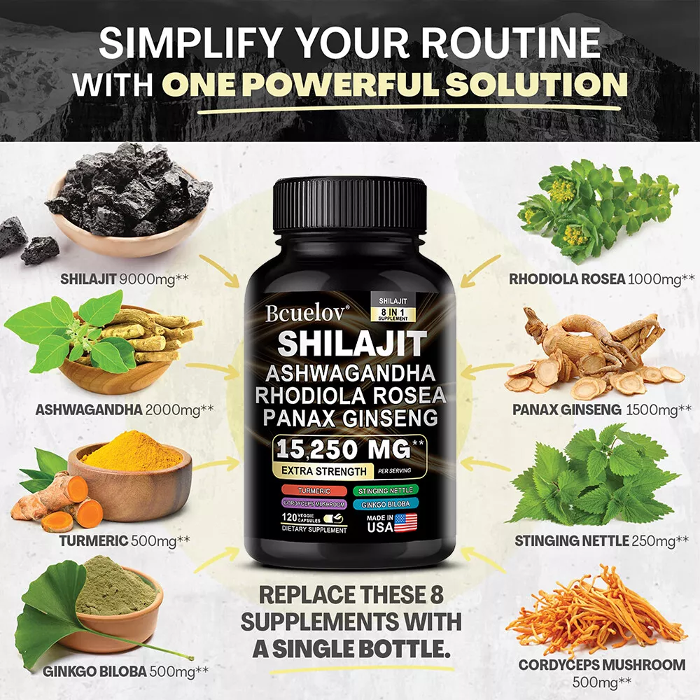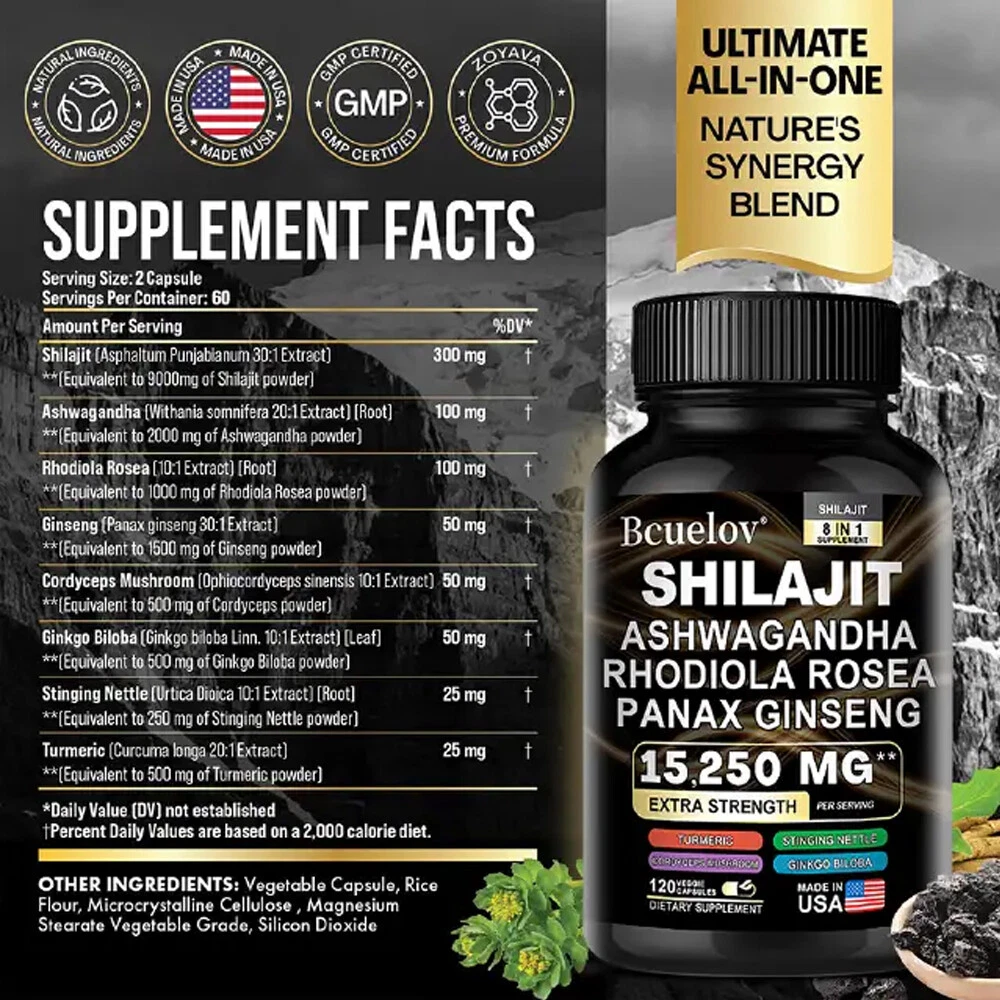 eBay Shilajit Multivitamin (Turmeric, Ashwagandha, Ginger, Cordyceps Mushrooms) Key Features: Immune Support,Energy Support Description: Introducing our revolutionary Nature's Synergy Formula, a comprehensive combination of Shilajit Pure Himalayan, Ashwagandha, Rhodiola Rosea, Panax Ginseng, Gingko Biloba, enriched with 8 potent ingredients. Experience the power of Turmeric, Stinging Nettle, Cordyceps Mushroom and more in one convenient formula. These himalayan shilajit ashwagandha panax ginseng capsules provide a great alternative to shilajit resin, panax ginseng gummies, and ashwagandha gummies. Our advanced formula of Natural Shilajit Capsules are designed for both women and men. Bcuelov presents the world's most comprehensive 8-in-1 formula, featuring shilajit pure, ginko biloba, rhodiola rosea, ashwagandha extract, panax ginseng extract, stinging nettle, cordyceps mushroom, and turmeric capsules giving you a comprehensive single-dose solution that you will ever need. Discover the ultimate solution you've been searching for. Our Bcuelov's Synergy blend offers 8 beneficial ingredients in a single dosage. Unleash the power of ashwagandha vitamin, shilajit natural, rhodiola rosea capsules, all conveniently packed into just one capsule. Finally, the convenience you've been waiting for—authentic shilajit, ashwagandha powder, panax ginseng supplement. Packed with a potent blend of Shilajit Supplement, Ginkgo Biloba, Ashwagandha Capsules, Rhodiola Supplement, Panax Ginseng, Turmeric Powder, Stinging Nettle and Cordyceps Mushroom it offers an abundance of benefits. Say goodbye to the clutter of countless supplements in your cabinet and make room for a single solution. We take great pride in providing our customers with vetted and trusted ingredients. Our commitment to quality is evident in our offerings of authentic pure shilajit, ashwagandha root, panax ginseng extract, ginkgo biloba and rhodiola rosea supplements. Rest assured that our shilajit capsules and ashwagandha supplements are meticulously formulated in a registered and certified facility right here in the USA. With our products, you won't find any unnecessary preservatives or fillers. How to take: See accompanying bottle label recommendations Storage: After opening, please seal and store in a cool place away from direct sunlight. Notice: Please read the portable label carefully. The production date is on the bottle cap or label. Shipping Returns FeEDBACK cONTACT US pAYMENT Shipping All the items will be dispatched within 4 business day after the payment is clear. We are not responsible for any custom duty or import tax. Returns 1. If you need return, please contact us with Email before open a case, let us know the detailed problem and send us some pictures for confirmation. 2. All returned items must be in the original packaging and provide us tracking number, specific reason for the returns. fEEDbACK Customer satisfaction is very important to us. If you have any problem with your order,please contact us and we will do our best to make you satisfied, please do not leave a negative feedback before we resolve your problem. We guarantee that your issue will be solved quickly. As long as you are happy with your purchase of , please leave us a positive feedback. Your feedback is very important to us it affects our search placement on eBay. cONTACT US If you have any queries, please contact us via ebay. We usually respond within 12 hours on weekdays. PaYMENT eBay Accepts The Following Payment Methods: 1.Visa 2.Mastercard 3.PayPal 4.Apple Pay 5.Google Pay 6.American Express Card Document