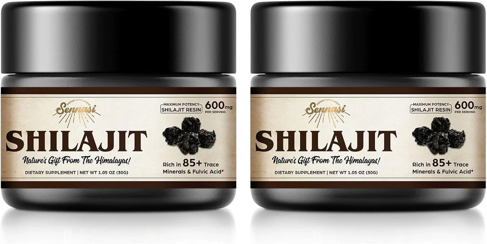 Shilajit Pure Himalayan Organic Shilajit Resin - 600mg Maximum Potency Natural Organic Shilajit Resin with 85+ Trace Minerals & Fulvic Acid for Energy, Immune Support, 30 Grams 2 Pack Pure organic shilajit resin freshly harvested from the Himalayan GilgitBaltistan Mountains at 18,001 ft altitude. This ancient ayurvedic traditions are derived from rare and gold-grade shilajit, loaded with essential minerals and fulvic acid, making it an excellent choice for you to live a balanced lifestyle Maximum 600 mg shilajit resin in each serving, with a true gold standard of purity and potency, you will get authentic organic shilajit resin at better quality. Say No to those low grade, low potency and small batch shilajit in fewer grams. shilajit resin comes in a 30g bottle with a double-sealed, light-protected glass bottle to keep the shilajit resin fresh and secure. Buy for the quality and potency Feeling run down? Enjoy a surge of overall feeling and strength with shilajit resin. With golden level pure shiljiat resin and unlike an ordinary mineral supplement, the fulvic acid component of Shilajit improves mineral absorption, support your well-being like immune system, energy level, digestion and reduce fatigue - enjoy a better overall quality of life Get the power of shilajit! shilajit resin is your unique 85+ trace minerals and fulvic acid powerful source, providing you with the essential minerals your body needs to stay energized. Simply dissolve a pea-size shilajit resin in warm water or add it to your favorite drink and you will take control of your overall wellness with shilajit Premium quality with non-chemical extraction, pure and potent shilajit resin is filler-free, additive-free, and free of hidden ingredients. Each bottle comes with measuring sticks. Get the most out of your day with Senaasi shilajit resin from GilgitBaltistanMountain - the perfect pick-me-up