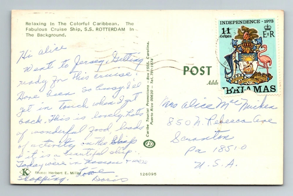 Ships -S.S. Rotterdam Cruising The Colorful Caribbean Vintage Souvenir Postcard