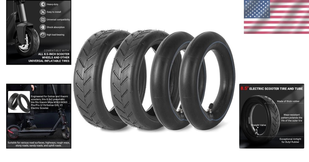 Shock-Absorbing 8.5x2 Electric Scooter Tires & Tubes - Year Round Performance ‹ › ‹ › ‹ › ‹ › ‹ › ‹ › ‹ › ‹ › Shock-Absorbing 8.5x2 Electric Scooter Tires & Tubes Year Round Performance -Scooter Tire & Tube 8.5-inch Replacement -Engineered for Gotrax and Xiaomi scooters -Compatible with Xiaomi Mijia M365/M365 Pro/Pro 2/1S/Gotrax GXL V2 Electric Scooter Features: Shock-absorbing 8.5” x 2 pneumatic tires and tubes Engineered specifically to excel in shock absorption Crafted from premium quality rubber for high load-bearing and cushioning performance Exceptional airtight inner tube made from Butyl Rubber for superior air retention Effortless installation with valve in the right direction Compatible with all 8.5-inch scooter wheels and diverse road conditions Benefits: Experience a lighter, more comfortable riding experience Enhance your scooter's performance in all weather conditions Reduced rolling resistance prolongs the life of your scooter tires Versatile compatibility with various electric scooter models Durable construction ensures optimal performance on highways, rugged pathways, and sandy roads Why choose our Shock-Absorbing Scooter Tires? Transform your riding experience with our Shock-Absorbing 8.5x2 Electric Scooter Tires & Tubes. Designed for year-round performance, these premium tires not only enhance shock absorption but also provide exceptional stability and comfort. Crafted from premium quality rubber, they promise durability across a variety of terrains. Whether you're navigating city streets, tackling rugged pathways, or cruising along the beach, our tires will ensure a smooth and enjoyable ride. Don’t compromise on your ride quality– invest in your electric scooter for a safer, more pleasurable journey. Upgrade today and experience the difference! Shipping Free & Fast Shipping - We offer free shipping to most of the USA with a normal delivery time of 3-10 businessdays. However, due to various situations, additional delivery time (up to 3 weeks) may be required for some items. Alternative Carriers - We may use alternative carriers (e.g. USPS, FedEx, UPS, etc.) to ensure your package arrives safely and on time. Due to the use of multiple carriers, we are unable to provide a tracking number automatically. Handling Time - Orders are processed and shipped within 1-5 business days of receiving cleared payment. Shipping Restrictions - Shipping to Alaska, Hawaii, Puerto Rico, Guam, and other US territories may incur shipping charges or delivery restrictions. Please contact us before ordering, or your order can be refunded/cancelled. State Restrictions - There may be restrictions based on your state of purchase. For example, certain items may not be shipped to California due to state regulations. Contact for Tracking Updates - If you require tracking updates or have any concerns about the delivery of your order, please feel free to contact us, and we will be happy to assist you. Return Please see our ebay return policy. We do not accept return on most products. This is to avoid customers mis-using ebay returns. All sales are final. Please be sure to check the return policy listed at the top of the listing. In rare cases, we may accept returns, if the buyer pays both ways shipping and 20% restocking fee. If you are un-sure of return policy of a particular item, please ask before buying. Payment We accept all major credit cards, PayPal, and Apple Pay for your convenience. Your payment information is secure and encrypted to ensure a safe and seamless transaction. Please complete your payment within 3 days of purchase to avoid any delays in shipping. Feedback Your feedback is extremely important to us. We strive to provide the best products and customer service possible. If you are satisfied with your purchase, please take a moment to leave us a positive review. If you have any concerns or issues with your order, please contact us before leaving negative feedback. We are committed to resolving any problems and ensuring your satisfaction. Contact Us If you have any questions or concerns, please feel free to reach out to our customer support team. You can contact us through the eBay messaging system. We are available Monday to Friday, 9:00 am to 5:00 pm EST, and we will do our best to respond to your inquiry within 24 hours. Buy it now and enjoy a pleasant shopping experience! UPC: Not Set MPN: Not Set Unit Quantity: 2 Sets Features: Shock Absorption,Easy to Install,High Load-Bearing Capacity,Wear Resistance,Tear Resistance,Heat Resistance Brand: Unbranded Model: Not Set Suitable For: Adults Type: Not Set Wattage: Not Set Color: Black Country/Region of Manufacture: Not Set Unit Type: lb