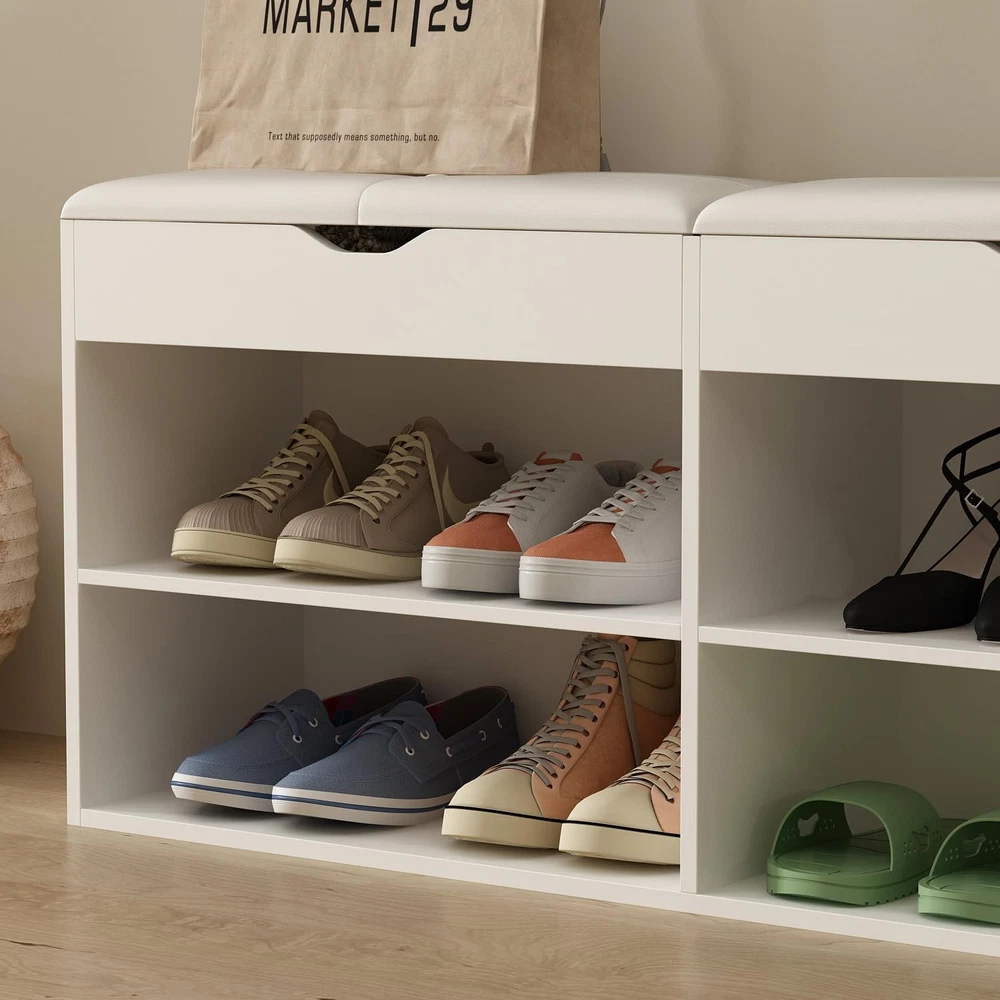 This shoe bench is a game-changer for my entryway! The lift-top storage boxes hide shoes neatly, while the adjustable shelves fit everything from bags to umbrellas. The cushioned seat is super comfy for putting on shoes, and the sleek PU leather looks great. Sturdy, spacious, and stylish—perfect for keeping my space clutter-free!