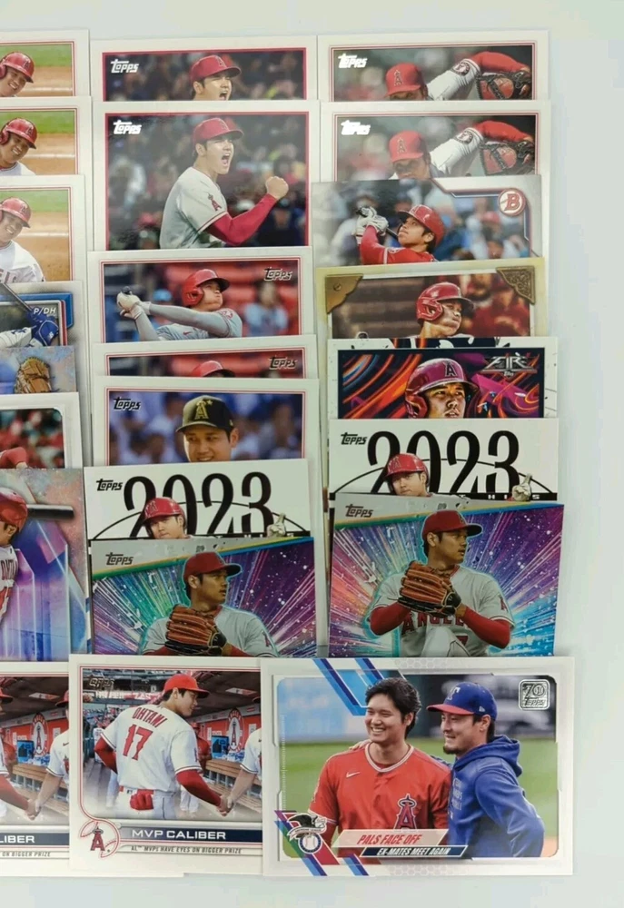 This Shohei Ohtani 36 card lot includes various seasons of baseball, with cards from the Angels and Dodgers. The set features cards from Topps, Prizm, and Optic, and includes inserts for added value. The cards are from the Major League Baseball (MLB) league and were manufactured by Topps in 2023. The lot is perfect for fans of the Los Angeles Dodgers and Los Angeles Angels, and collectors of sports trading cards. With 36 cards in total, this lot is a great addition to any collection. Don't miss out on the chance to own these unique and collectible cards.