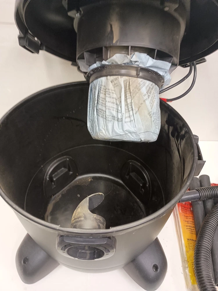 This thing was rarely used like once or twice. There are still two of the original filter bags left but I don't know what condition they're in but they look usable. It's just been sitting in storage and it's time to get rid of it. The Shop-Vac 87722-67 is a wet/dry vacuum with a 10 gallon capacity and a 2.5 horsepower motor. It comes with a cartridge filter and a micro filter, and includes accessories such as a nozzle, extension wand, and floor brush. The vacuum is bagged and has a voltage of 120V. It is portable, has a blower feature, and is compact. The unit type is measured in gallons and has a weight of 15 pounds.
